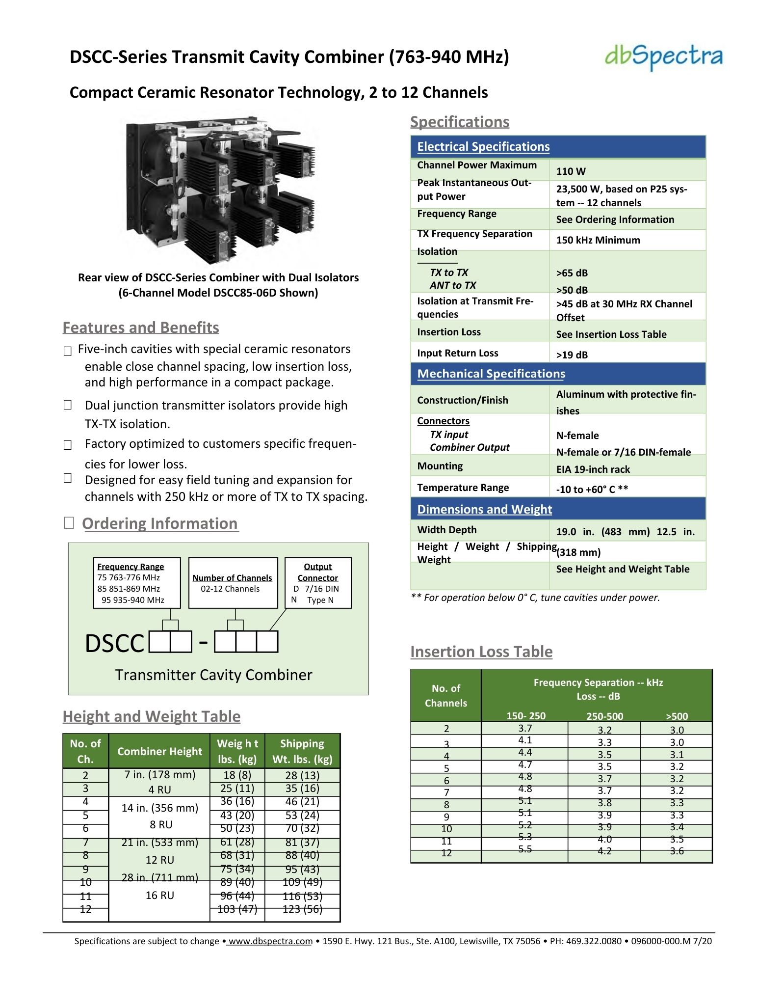 DbSpectra 935-940 MHz, 2 Channel, Transmit Cavity Combiner (DSCC95-02D)
