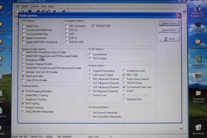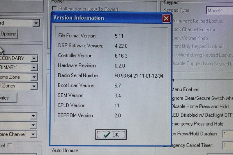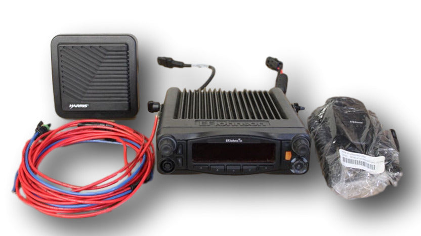 This is an EF Johnson "RS-5300" Series UHF mobile radio. This radio is capable of both digital (P25) and analog operation and is set up for AES256 encryption. Comes complete with power cable, mounting bracket and palm mic.
