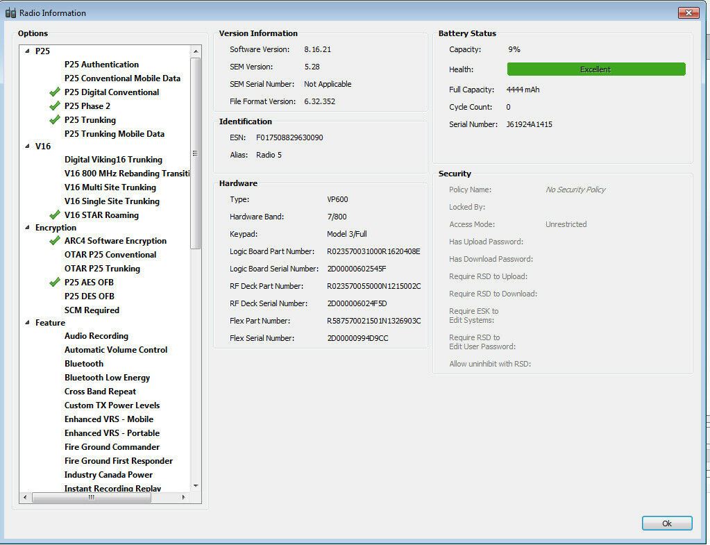 NEW (Old Stock) EF Johnson KENWOOD VP600 FULL KEYPAD P25 Digital radio, model number 2425X7C003628. These units operate in the 700/800 MHz band. Units are capable of both digital & conventional P25 PHASE 2 operation, P25 (trunking) and also includes AES encryption. Please see the last picture above in the picture gallery for the radio information. Included with the radio is (2) Li-ion batteries, antenna, belt clip, and rapid charger. These radios say VP400 on them but have been since upgraded to VP600 models. This is the competitor for the APX series of Motorola radios. All units are in new/open box condition and were never used. Free programming is available (conventional only) 1-16. If you have additional questions please contact us (M-F, 8am-4pm MT).