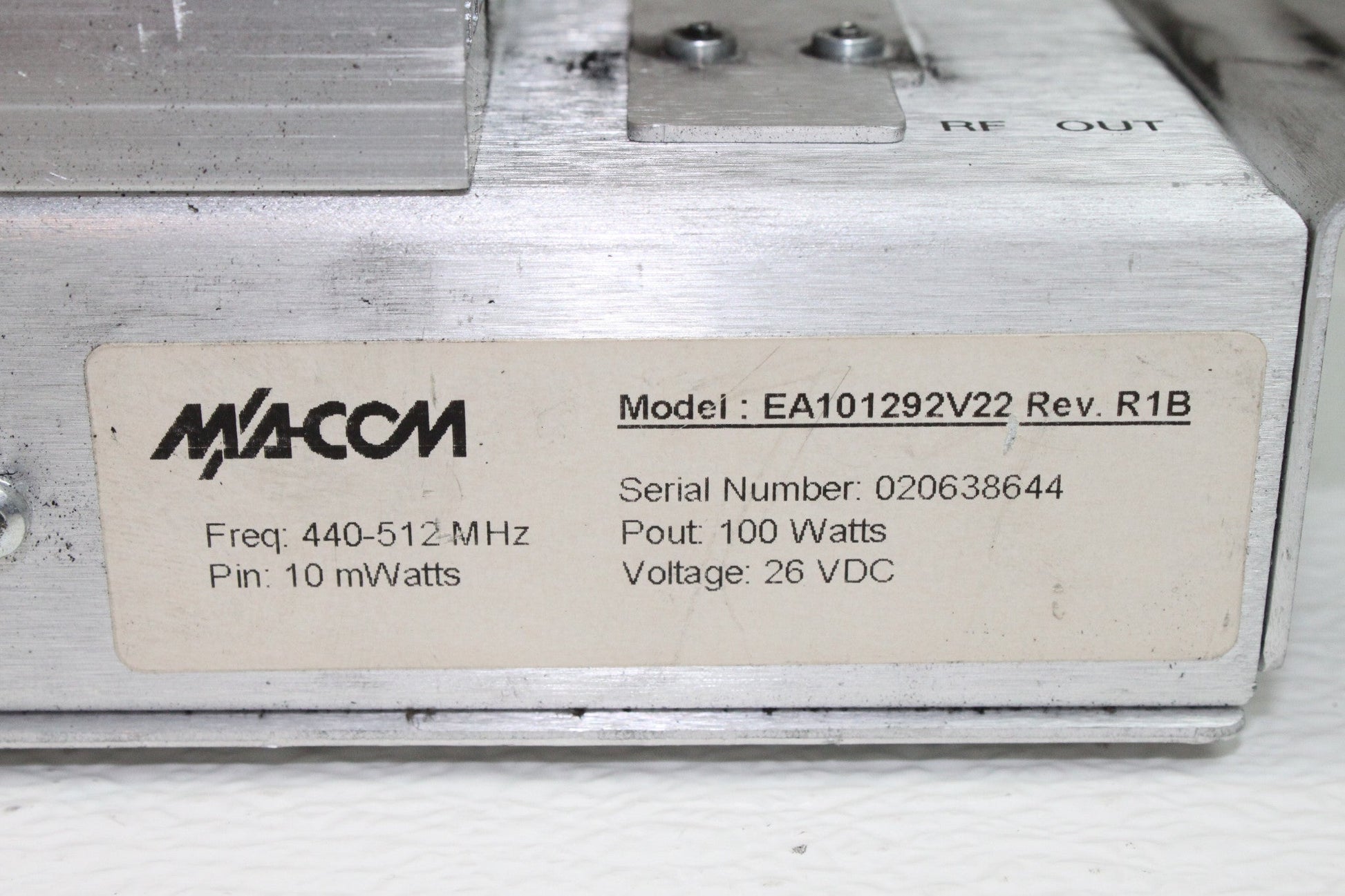 HARRIS MACOM MASTR III UHF 100W Power Amplifier, 440-512Mhz 26V