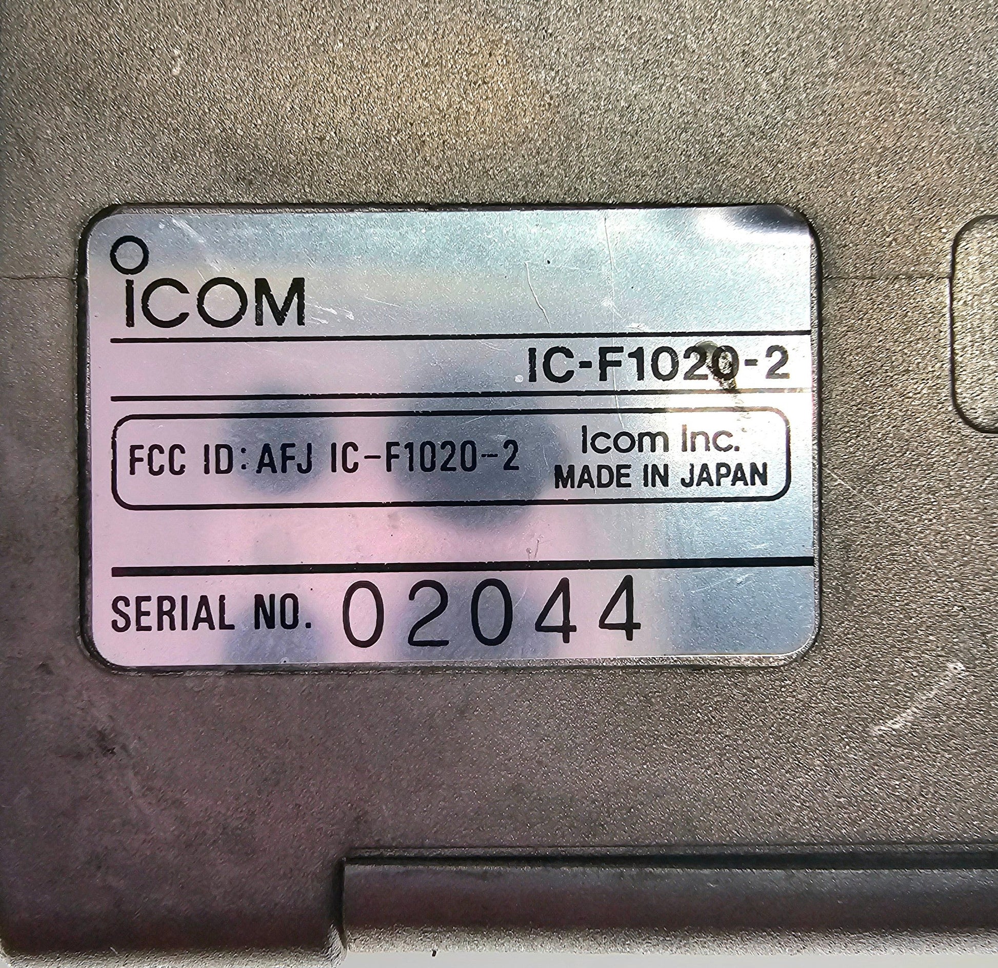 Icom IC-F1020-2 VHF radio. This is a 45 watt, 32 channel radio with a band split of (146-174 MHz). Radio is in excellent shape and guaranteed fully operational. Comes complete with palm mic, mounting bracket and power cable. These radios are capable of narrowband operation. Free programming is available (1-16). If you have any questions please contact us.