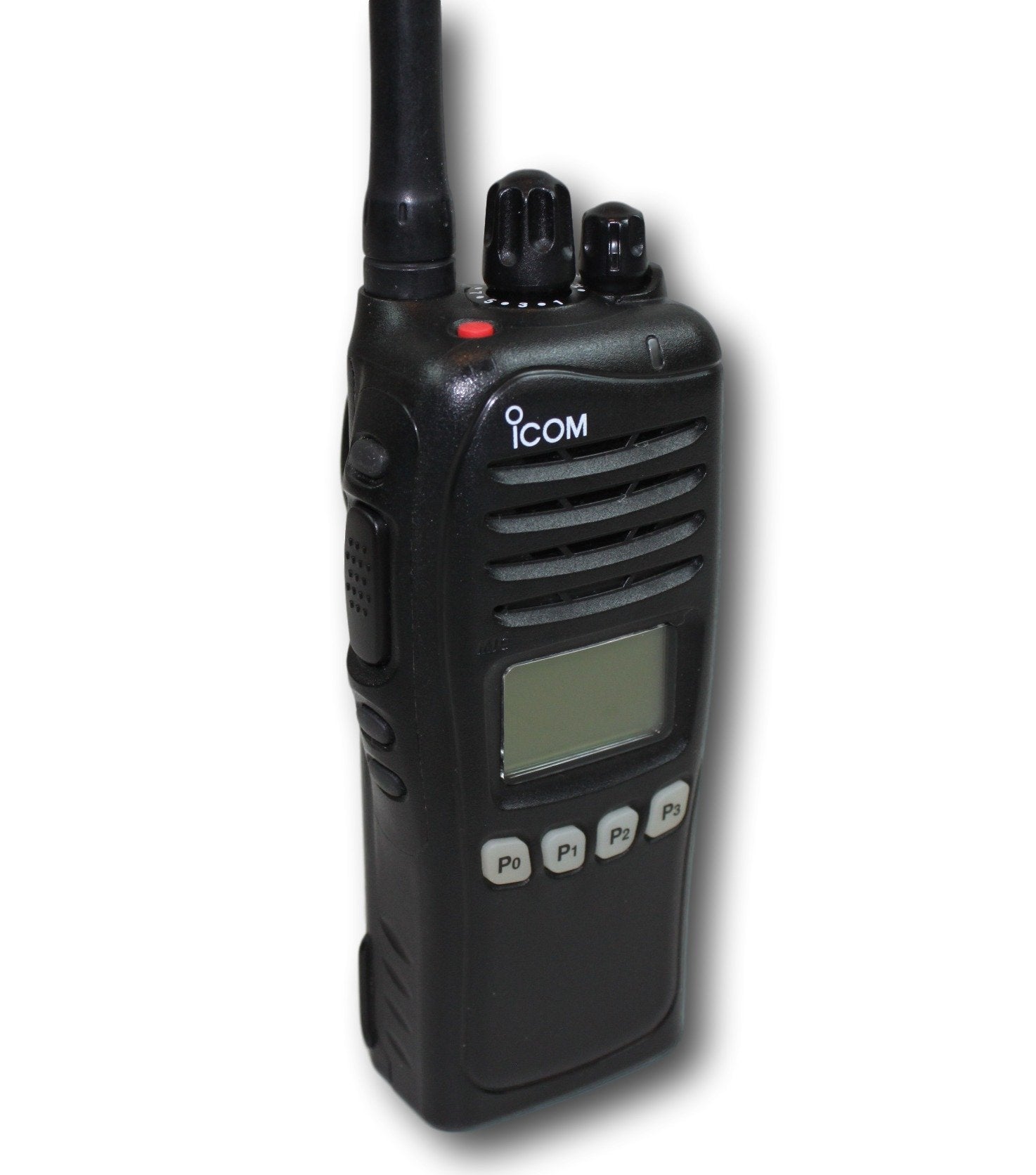 The IC-F3161D series has a large dot matrix display to show information with high resolution characters. The display setting is programmable to show one line and 12 characters, or two lines and 24 characters. The bottom row shows assigned functions to the [P0] to [P3] buttons.