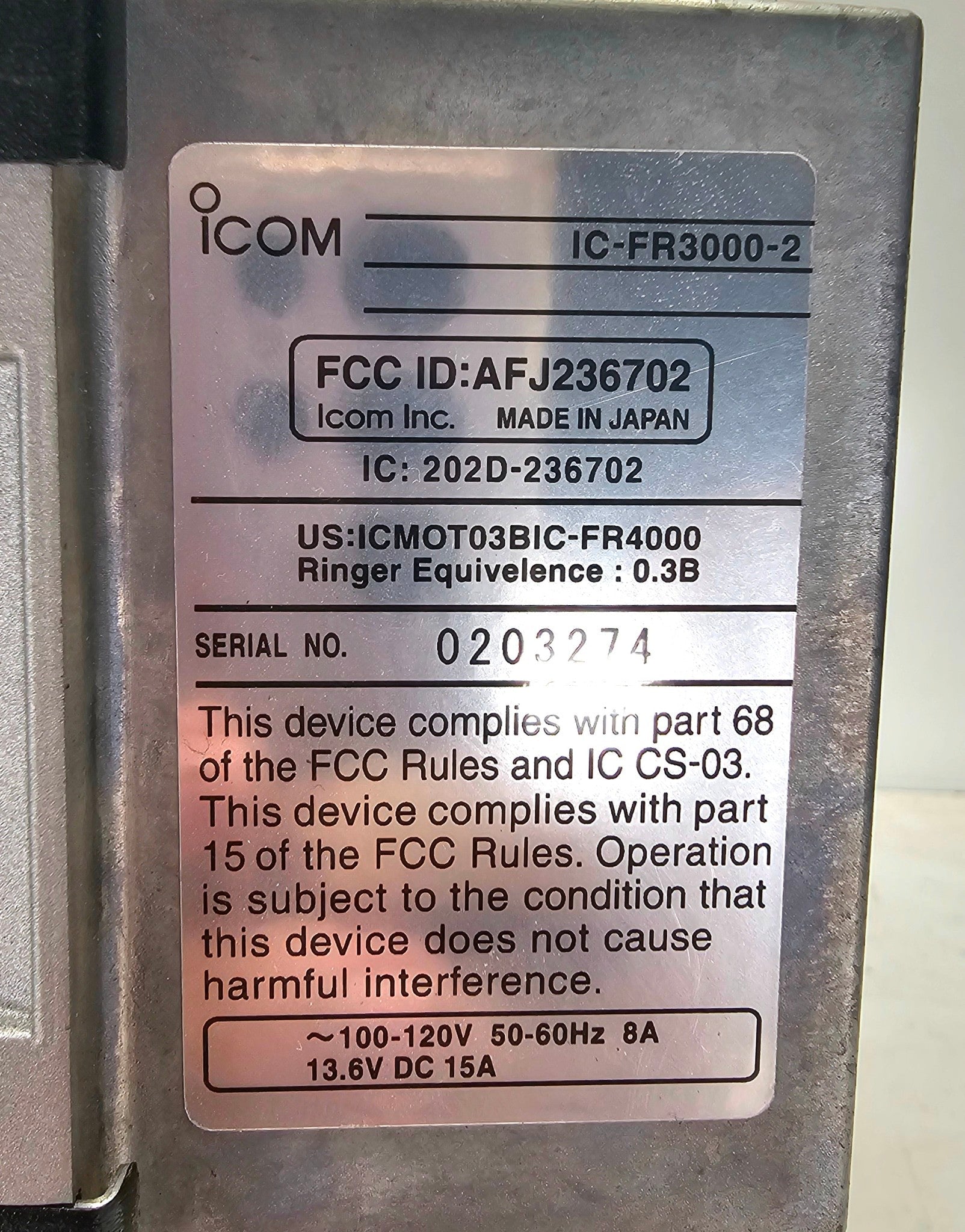 Icom IC-FR3000-2 VHF 150-174 MHz 50 Watt Repeater w/ Duplexer