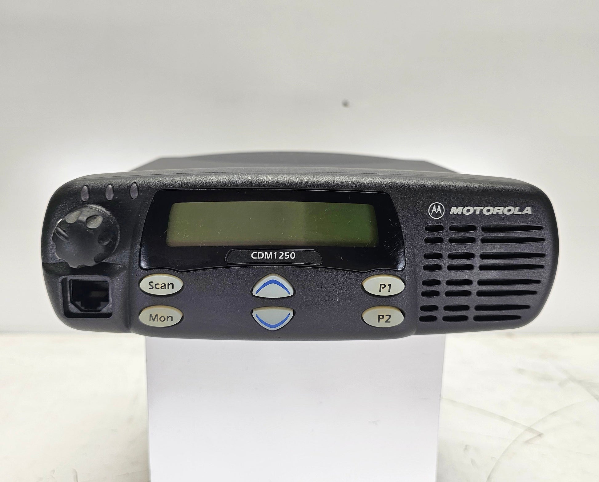 Motorola CDM1250 VHF radio, model number AAM25KKD9AA2AN. This is a 64 channel, 45 watt radio with a band split of 136-174 MHz. Unit comes complete with palm mic, mounting bracket and new power cable. Radio is in great shape and guaranteed fully functional. Free programming is available (up to 16 channels). If you have any questions please contact us - Office Hours M-F (8-4 pm) Mountain Time