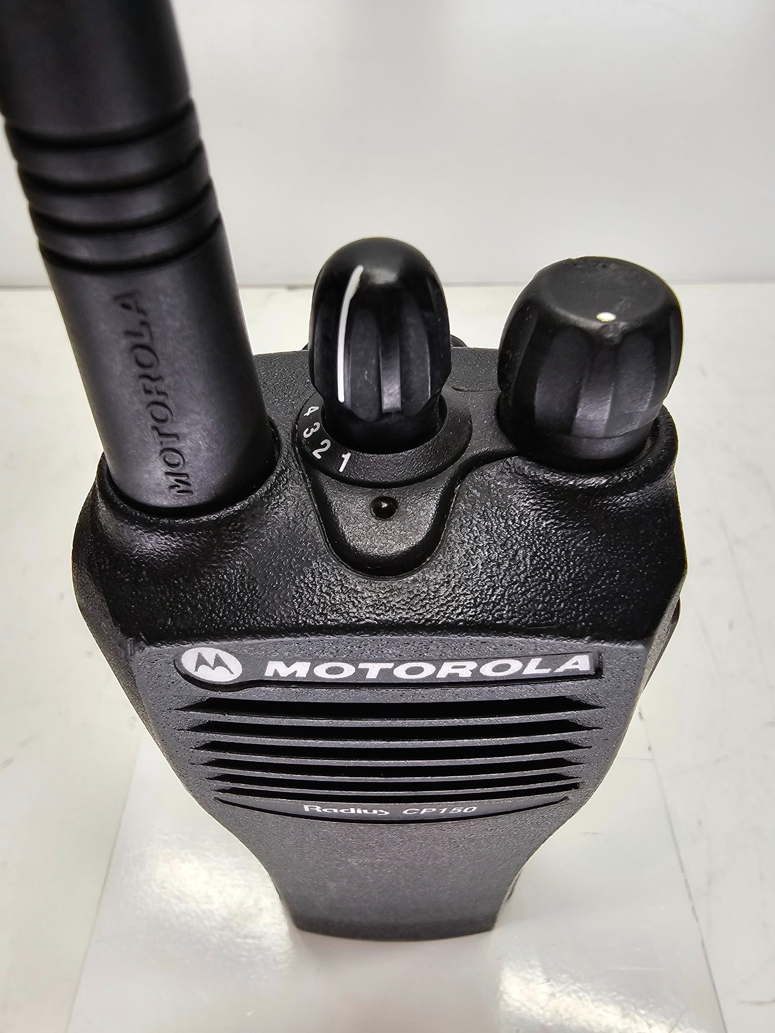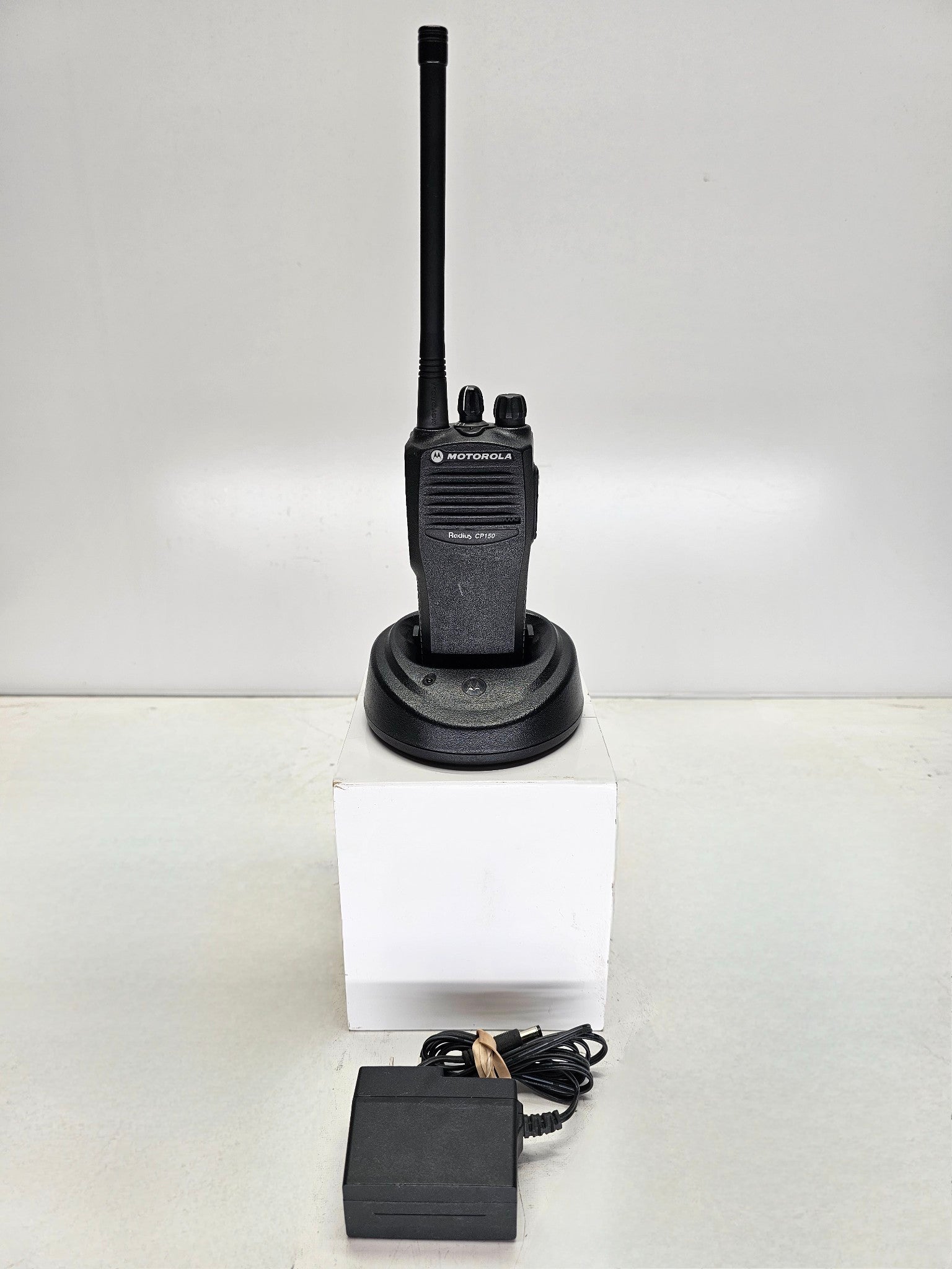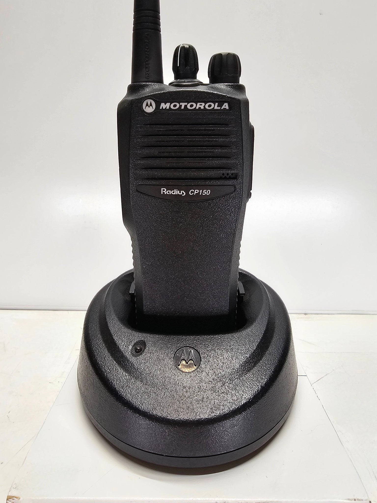 Motorola CP150 VHF radio, model number AAH50KCC9AA1AN. This is a 2 watt, 4 channel radio with a band split of 146-174MHz. Units are in excellent shape and are guaranteed fully operational. Free programming is available (up to 16 channels). If you have any questions please contact us.