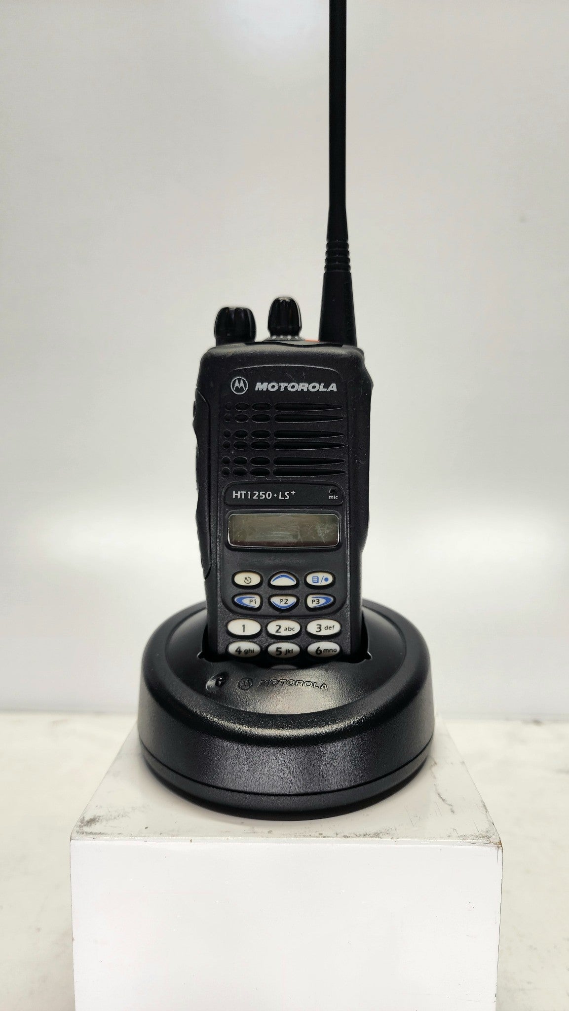 Motorola HT1250 UHF LS+ portable - model number AAH25SDH9DP9AN. This is a 4 watt 32 channel (Conventional) and 128 Channel (Trunking) radio with a band split of 450-512 MHz. Radio comes complete with battery, belt clip, antenna, and rapid charger. If you have any questions please contact us.