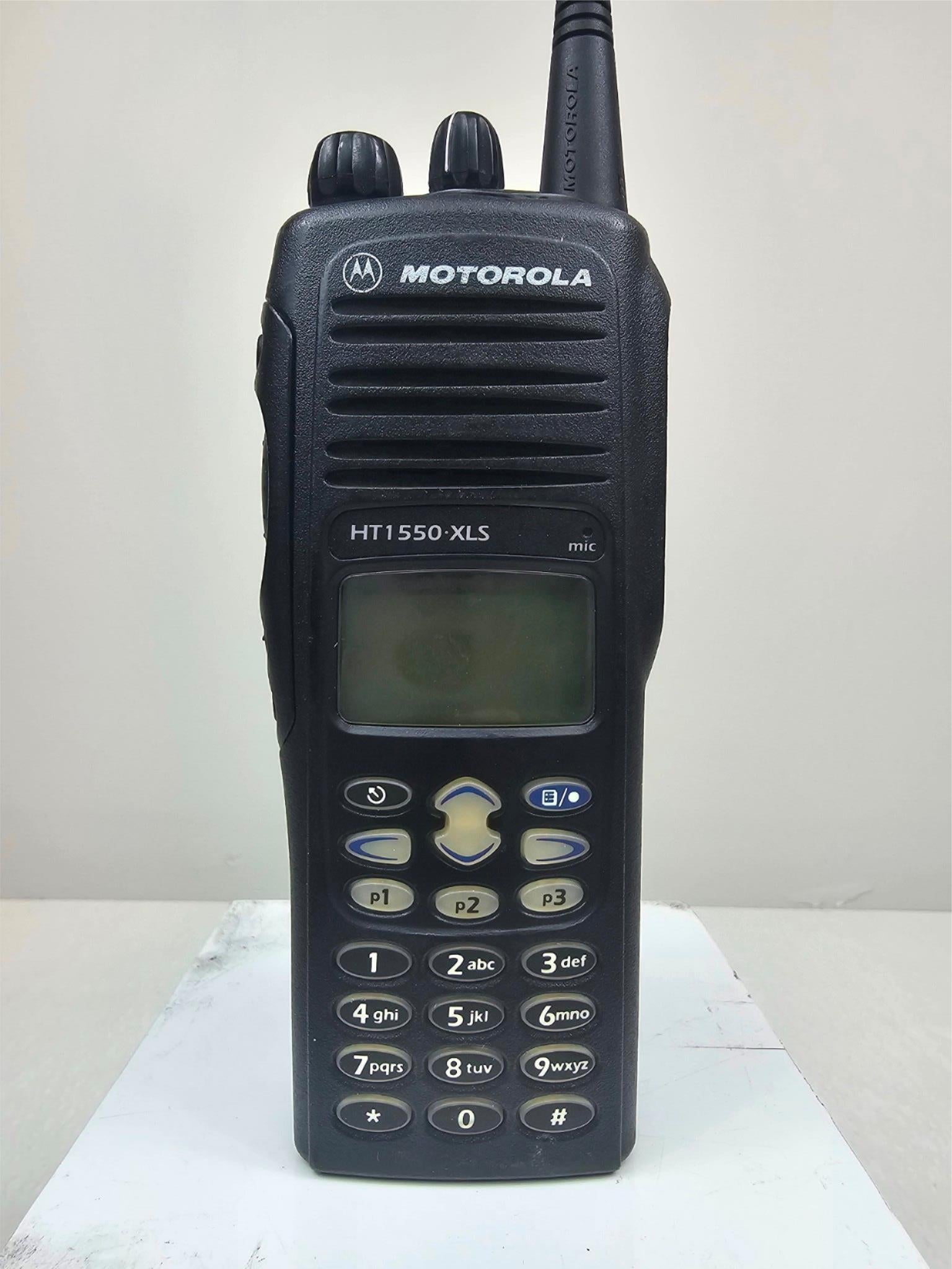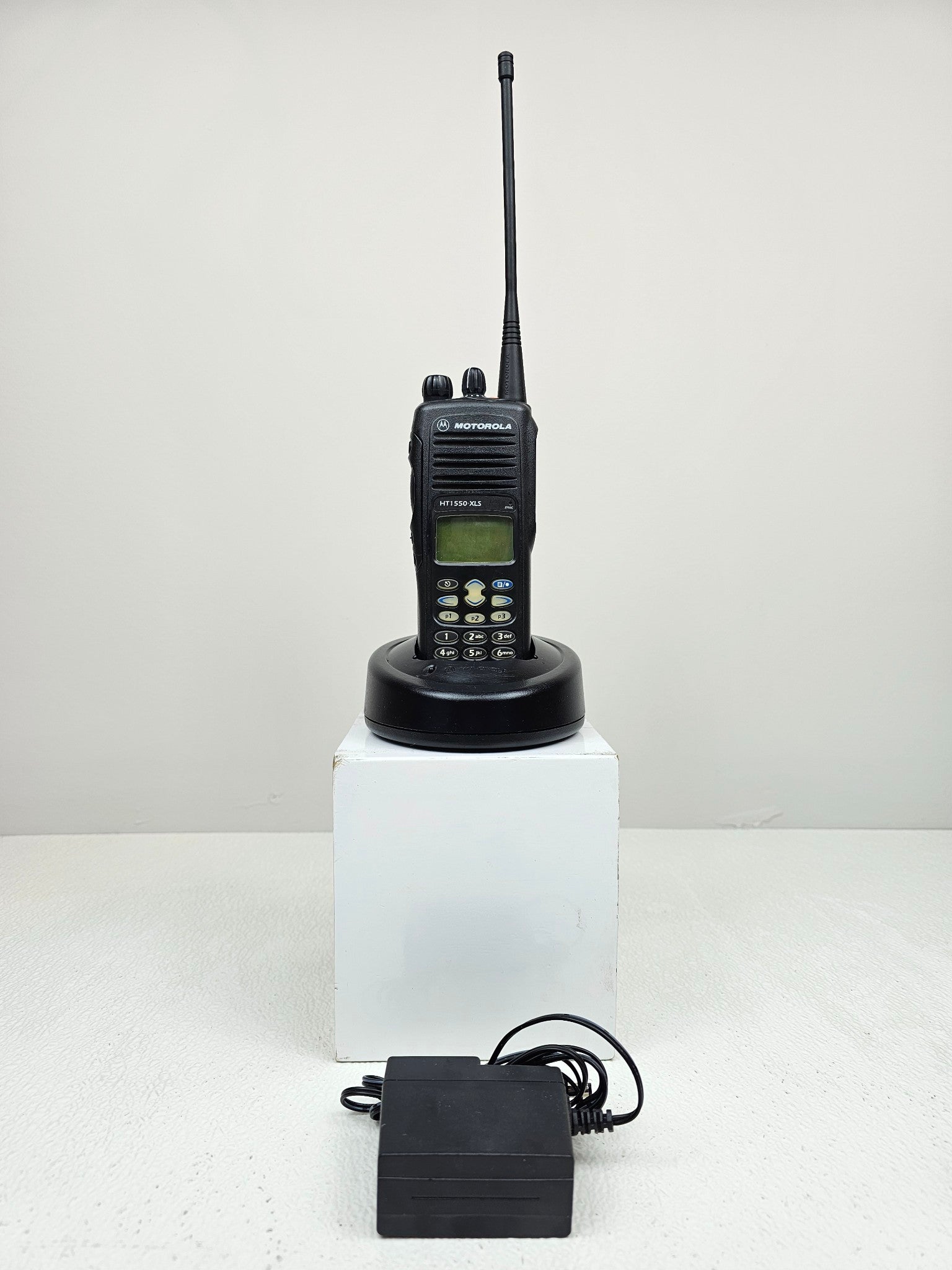 Motorola HT1550 XLS UHF radio - Model number AAH25SDN9DU8AN. This is a 4 watt, 160 channel radio with a band split of 450-512 MHz. Radio is capable of conventional and LTR trunking operation. Comes complete with antenna, battery, belt clip and charger. Free programming is available (Up to 16 Channels). If you have any questions please contact us (Mon-Fri, 8AM-4PM) Mountain Time.