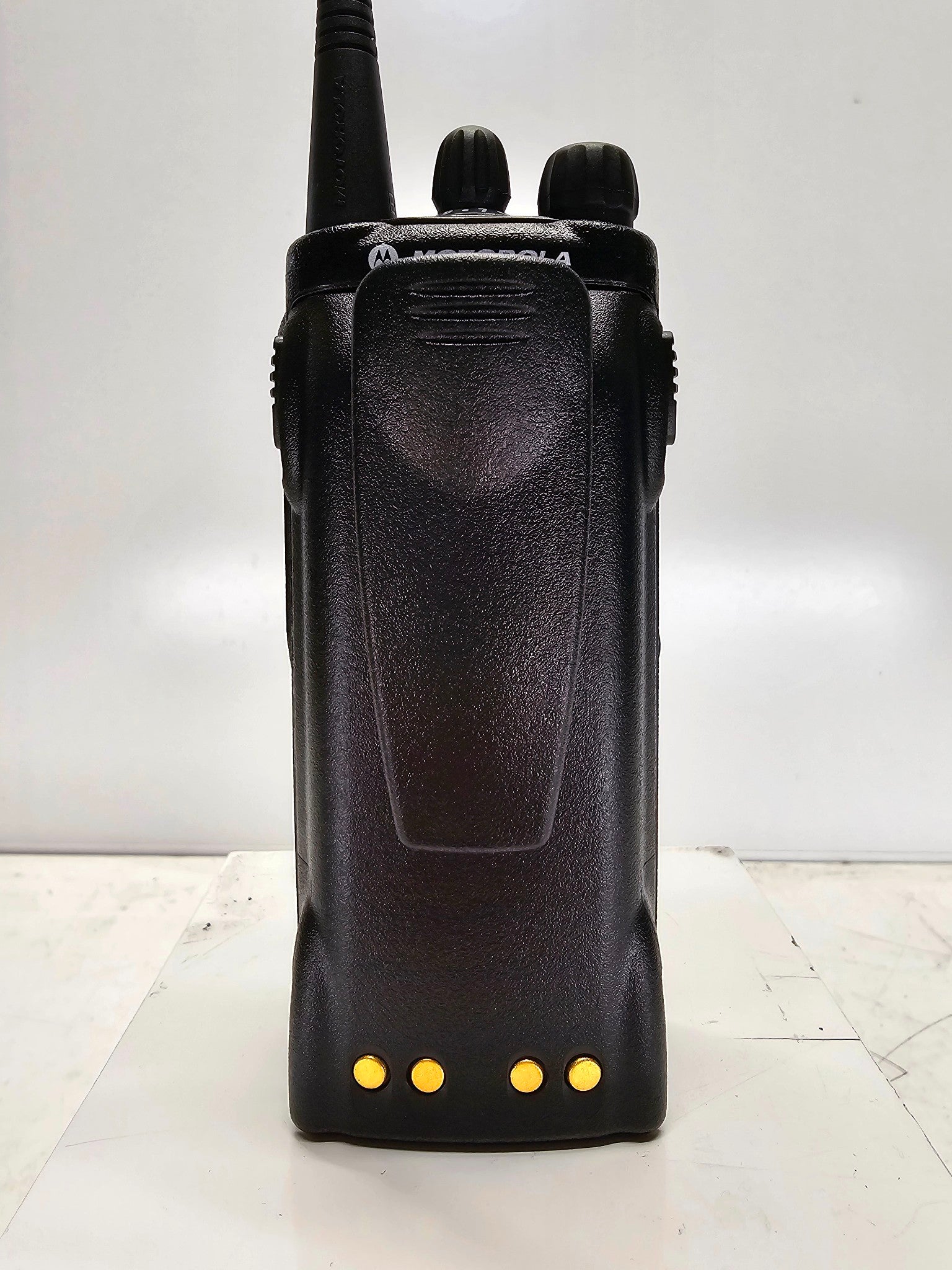 Motorola HT750 UHF radios, model number AAH25RDC9AA2AN. These are 4 watt 4 channel radios with a band split of 403-470 MHz. Units are in great condition and come complete with battery, belt clip, antenna, and charger. Free programming is available (Up to 16 Channels). If you have any questions please contact us - Office Hours M-F (8-4 pm) Mountain Time