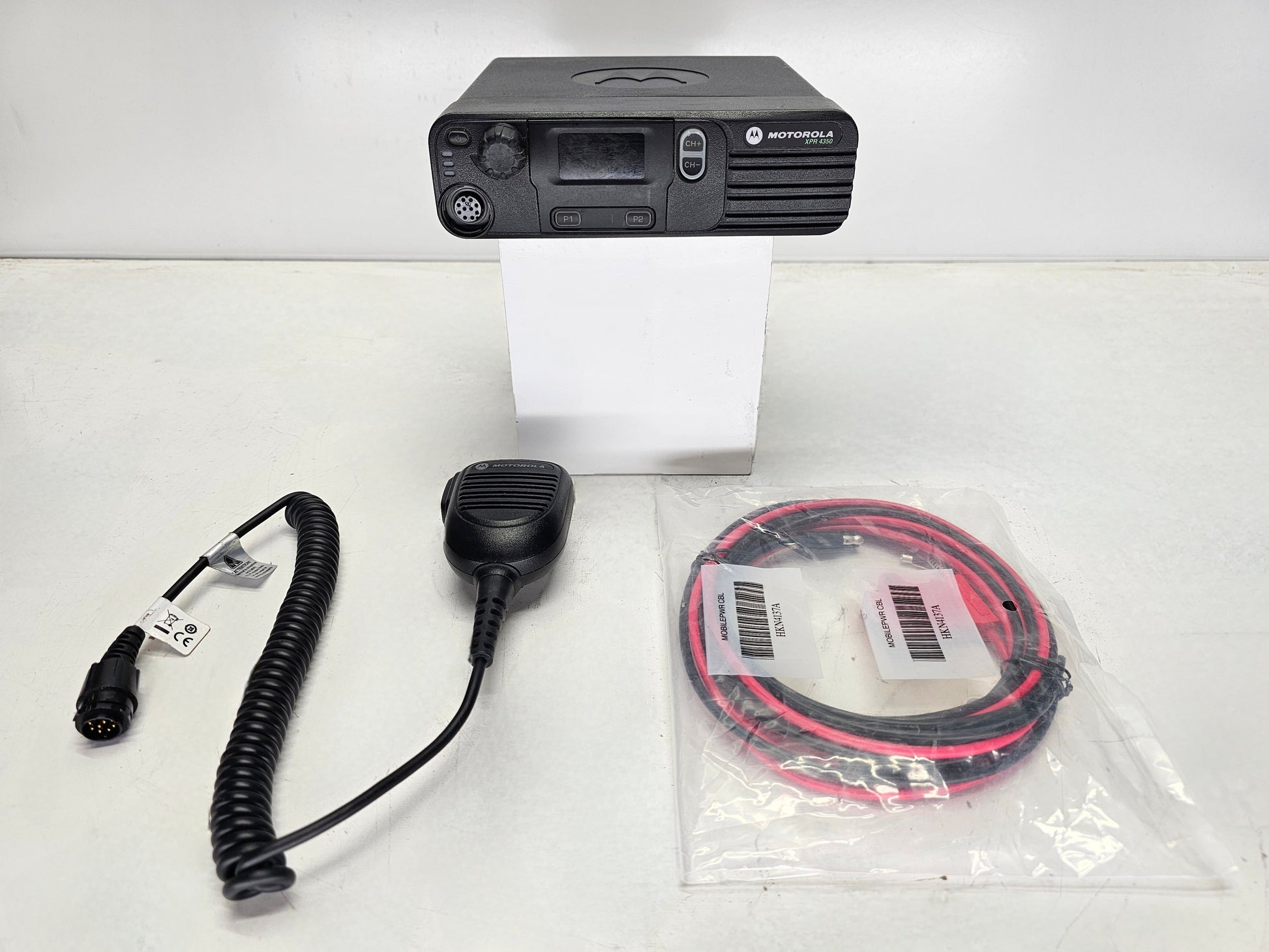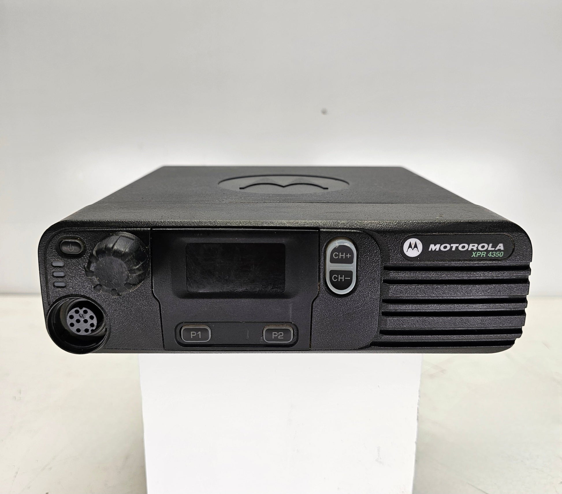 Motorola UHF MotoTRBO XPR4350 radio with CONNECT PLUS, model number AAM27QPC9LA1AN. This is a 40watt, 32 channel radio with a band split of 403-470 MHz. Radio is in good shape and guaranteed fully operational. Radios are capable of both analog and digital operation. Radios come complete with palm mic, bracket and new power cable. Free programming is available (1-16). If you have any questions please contact us Mon-Fri (8am-4pm MT).