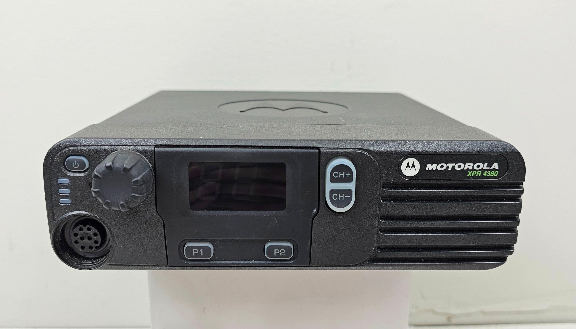 | Motorola UHF MotoTRBO XPR4380 radio, model number AAM27UMC9LB1AN. This is a 40 watt, 32 channel radio with a band split of 450-512 MHz. Radios are in great condition and are guaranteed fully operational. Radios are capable of both analog and digital operation. Units come complete with palm mic, bracket and power cable. Free programming is available (Up to 16 Channels). If you have any questions please contact us (Mon-Fri: 8am-4pm) MST. Features: Alert Tones On/Off Backlight (Decode Only) Battery Status (Decode Only) Keypad Lock (Decode Only) Scan On/Off Call Alert (Decode Only) Private Call (Decode Only) Emergency (Encode Only) Site Search Site Display Site Lock Zone Selection SmartZone Operation |