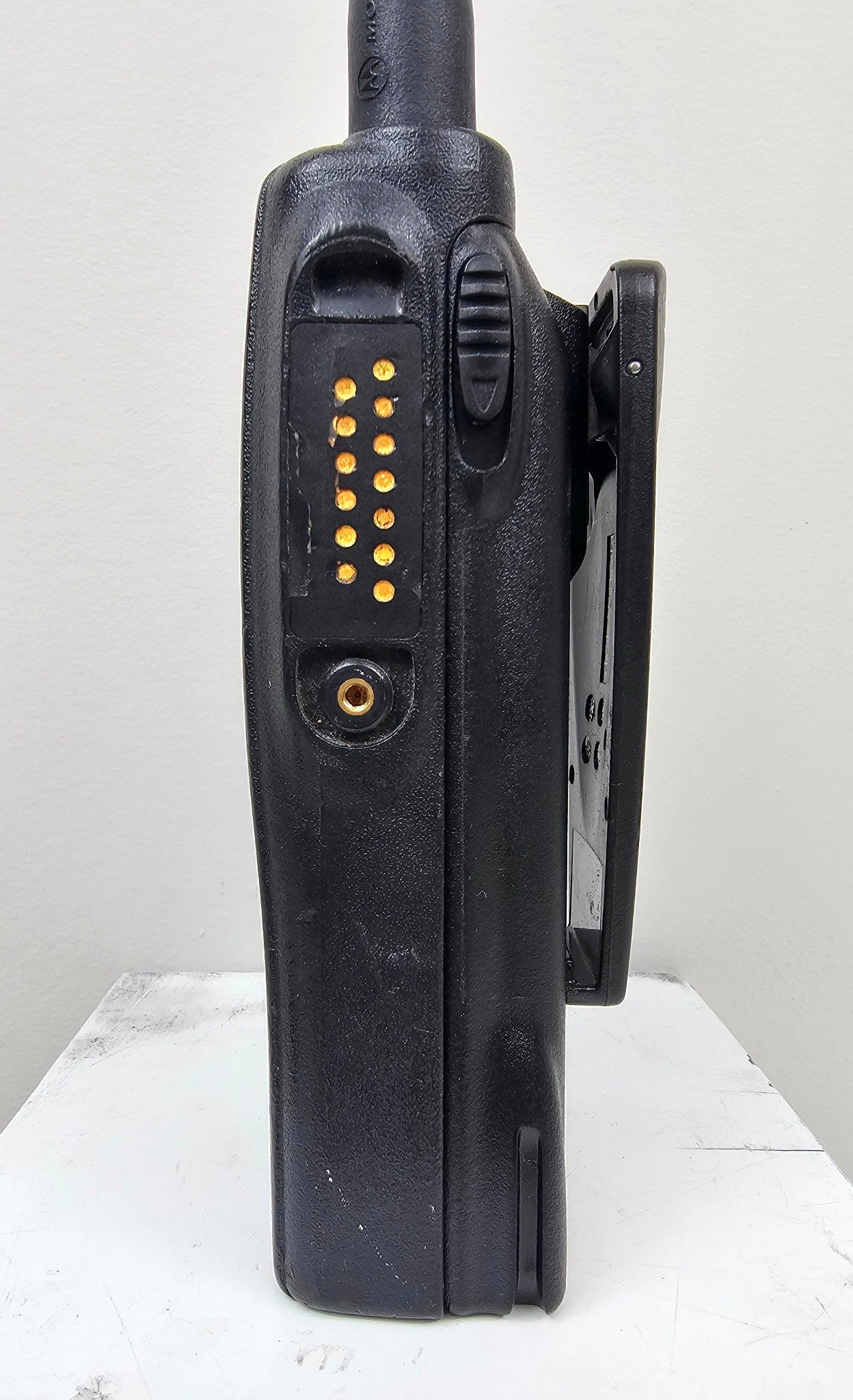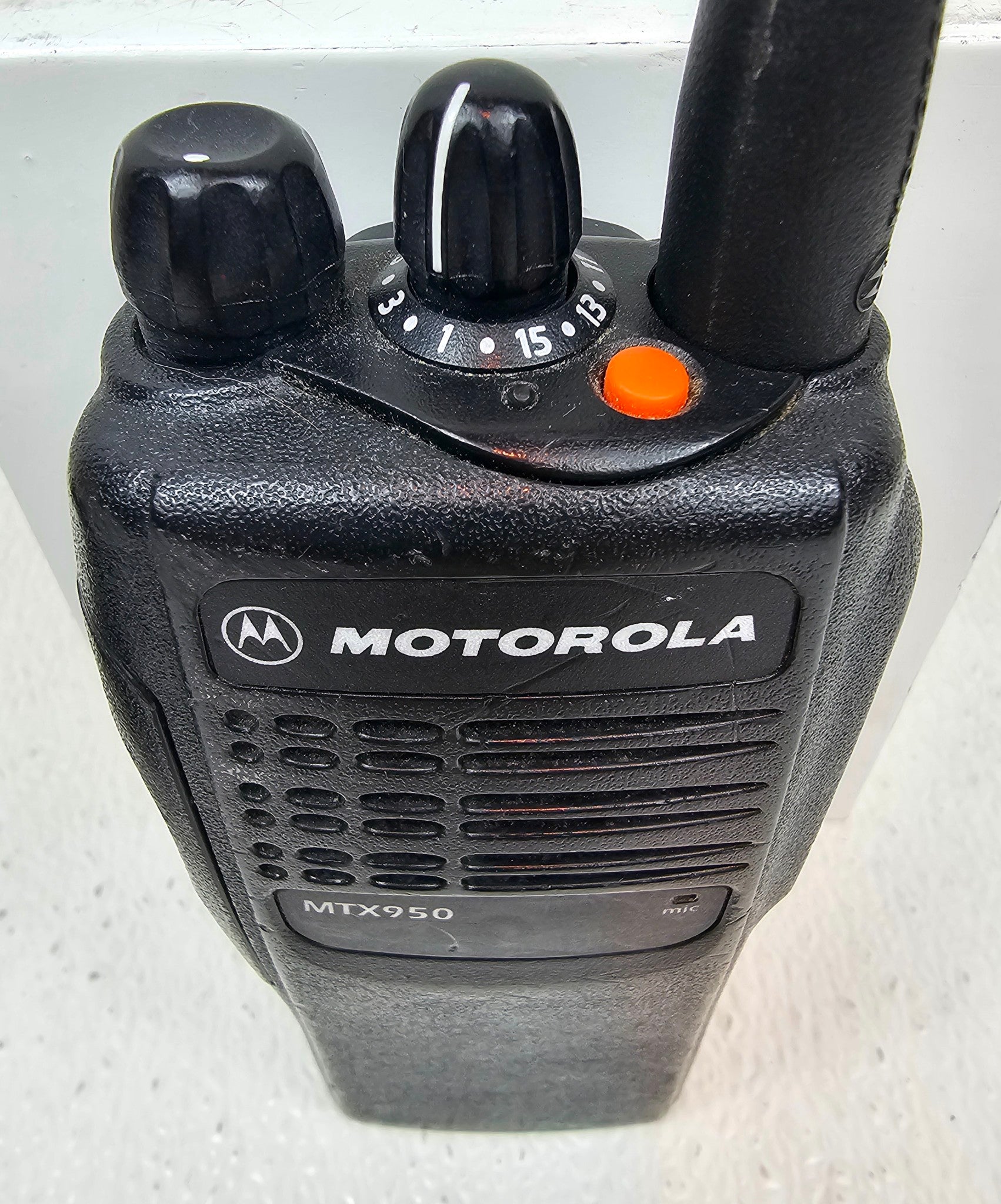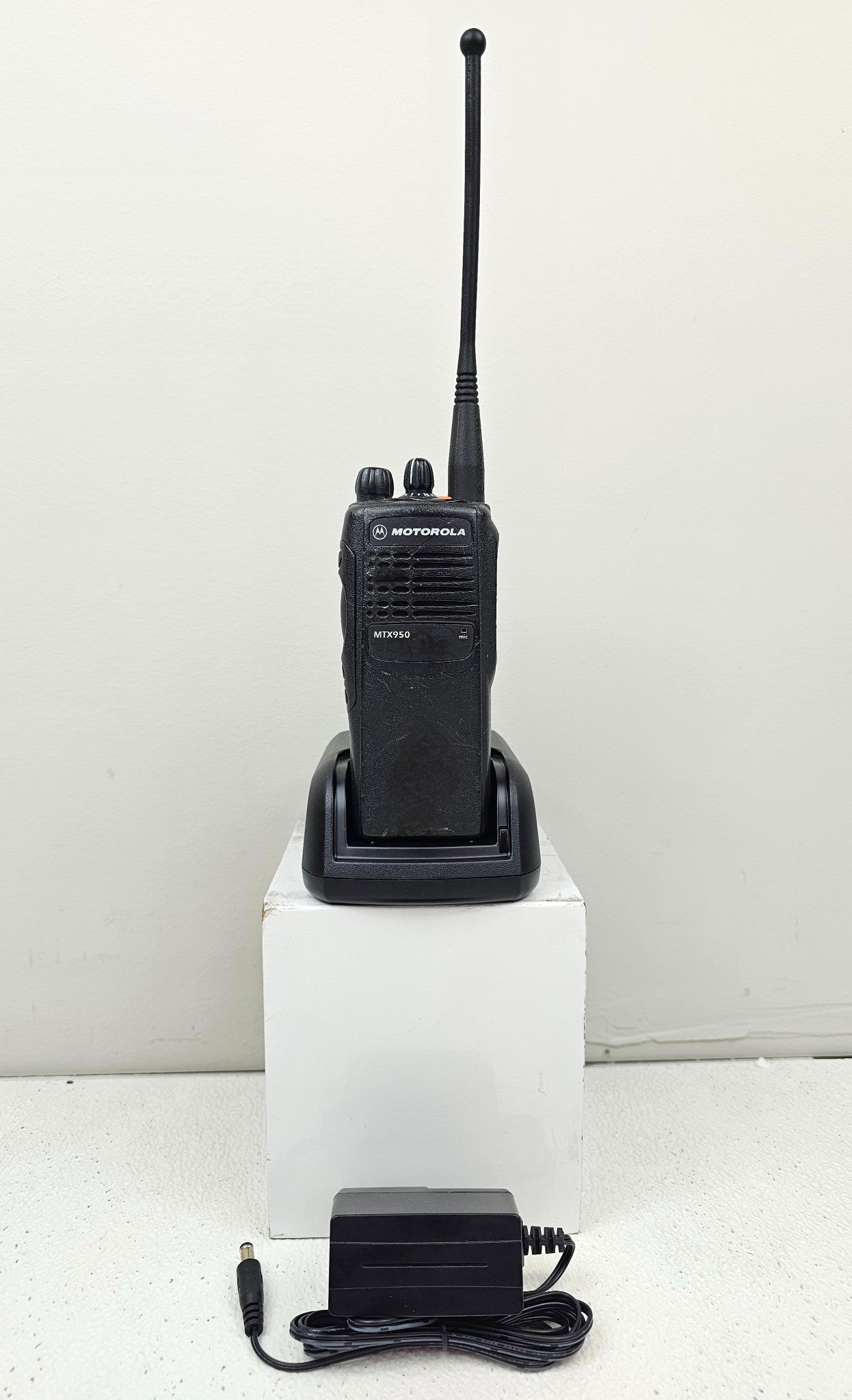 This is a Motorola MTX950 radio, model number AAH25WCC4GB3AN. These are 900 MHz (896-902 MHz 935-941 MHz) 2.5W radios that operate on Motorola's privacy Plus Trunking Systems and Conventional repeaters. Listed below are some of the radios features. Radios are in great shape and come complete with antenna, battery, charger, and belt clip. Please contact us if you have any questions. Office Hours (M-F: 8am-4pm) MST.