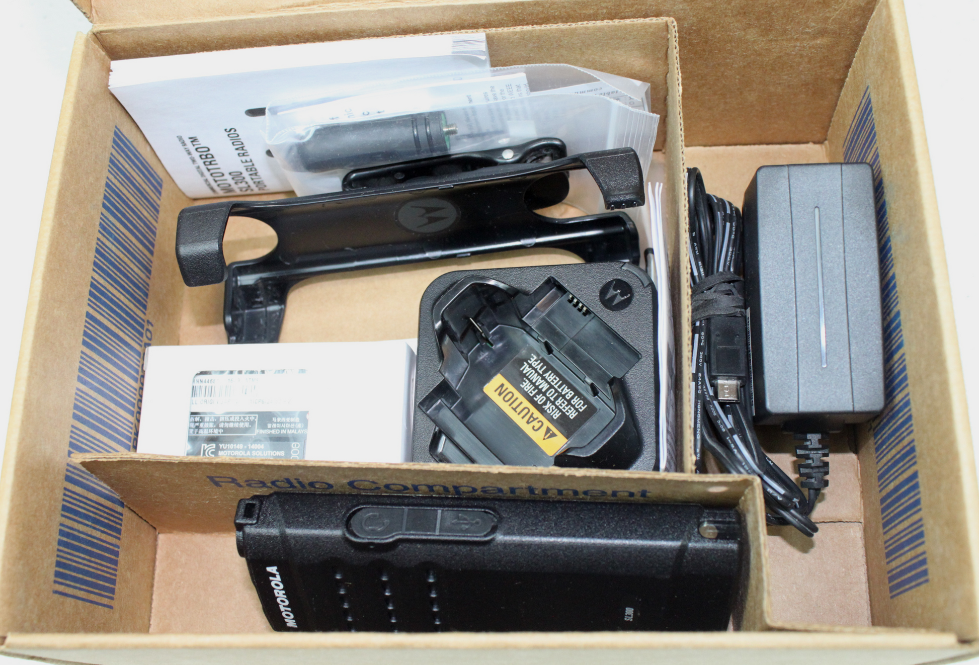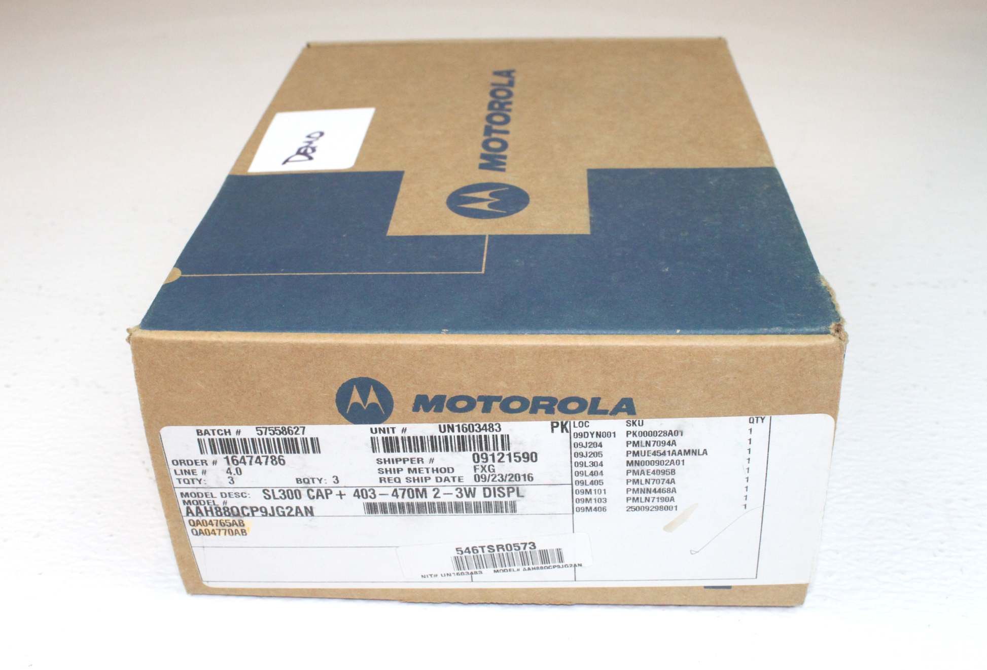Motorola SL300 Capacity + UHF radio, model number AAH88QCP9JG2AN. This is a 2-3 watt, 99 channel radio with a band split of 403-470 Mhz and has a unique active display built into the front hoousing of the radio. These radios are demo units that have barely ever been used and are guaranteed fully operational. Radio includes battery, holster and charging adapter. This unit can also be programmed for both analog and digital operation. If you have any questions please contact us.