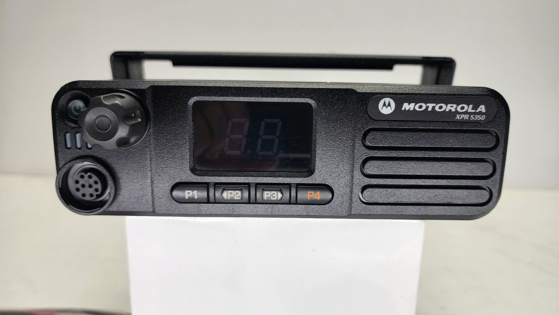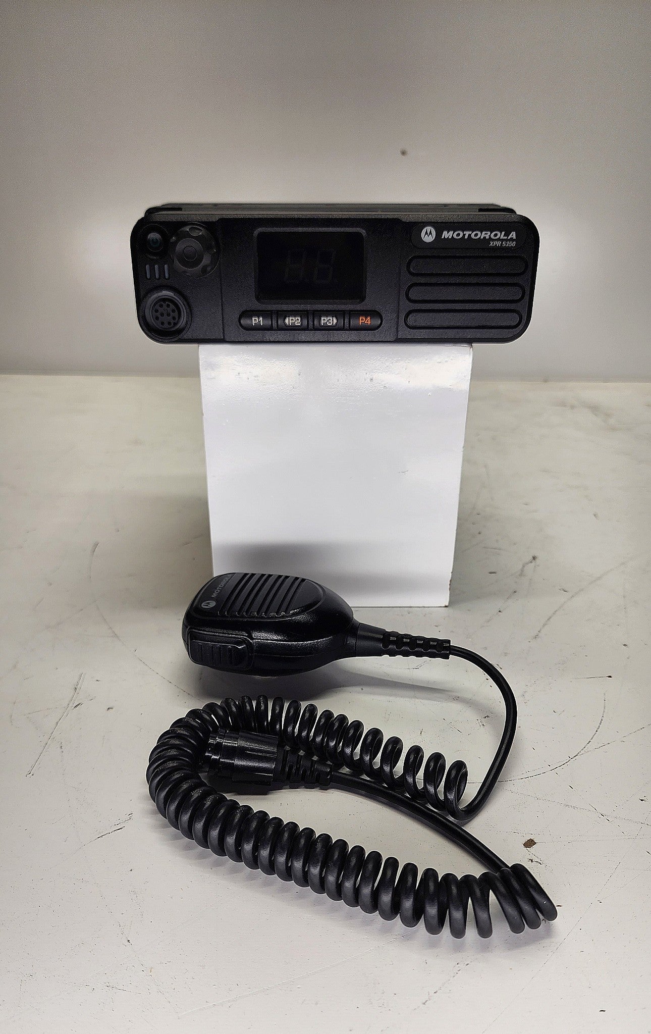 Motorola XPR5350, 25 Watt, 32Ch, 403-470 MHz mobile radio (AAM28QNC9KA1AN). Radios are in excellent condition – each radio comes complete with the radio, mounting bracket, power cable and palm mic. We will program up to 16ch for free. If you have any additional questions, please contact us (M-F, 8am-4pm, Mountain).