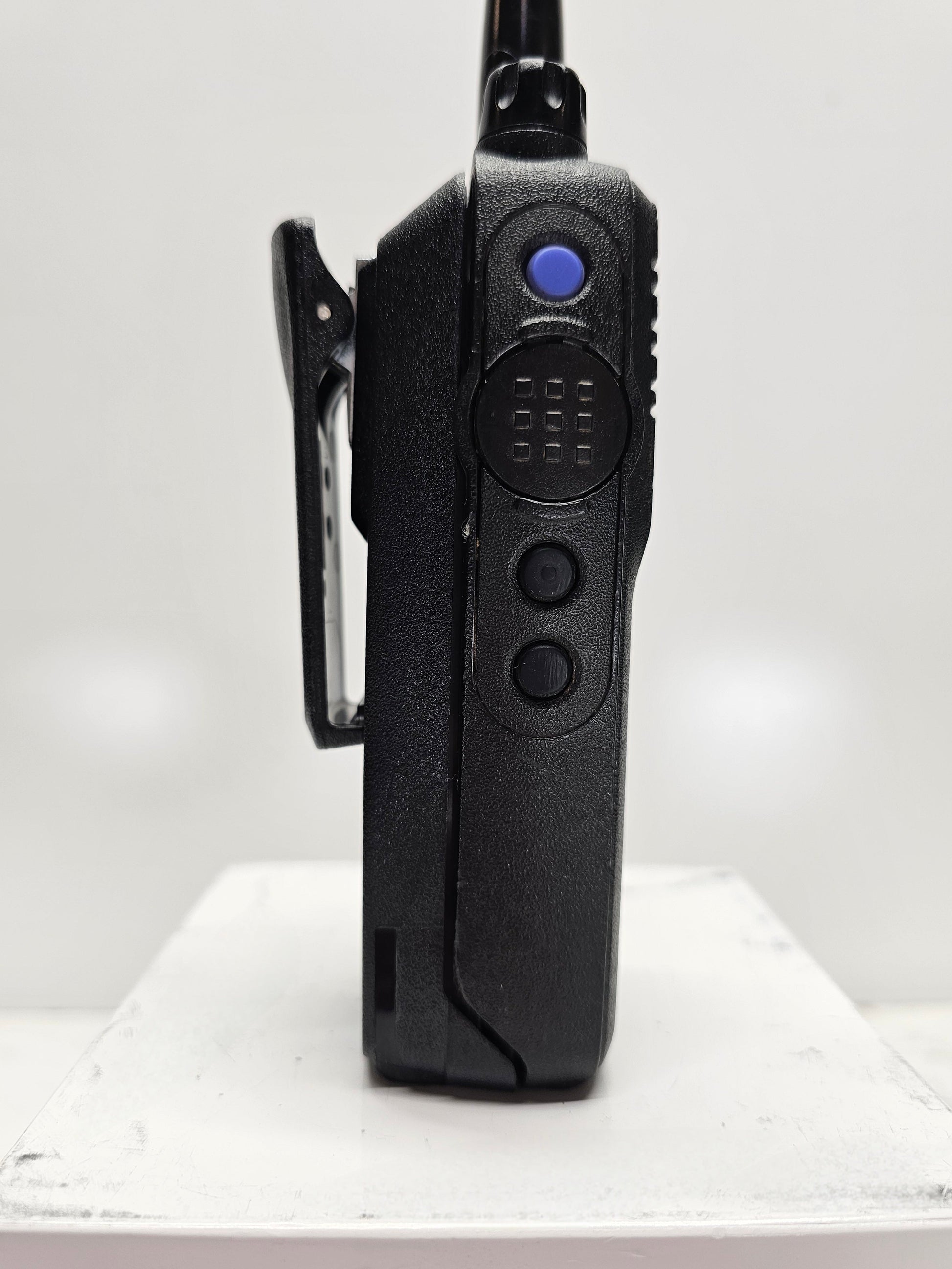 Large, textured push-to-talk button provides good tactile response and easy access, even when wearing gloves.