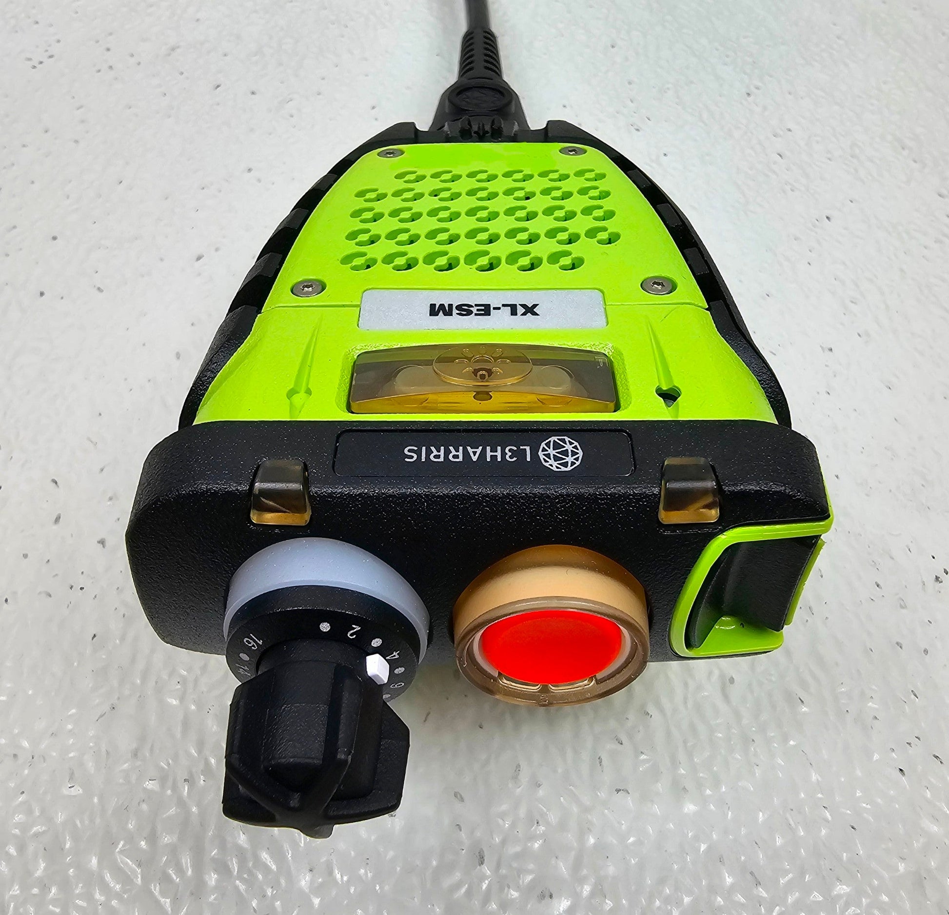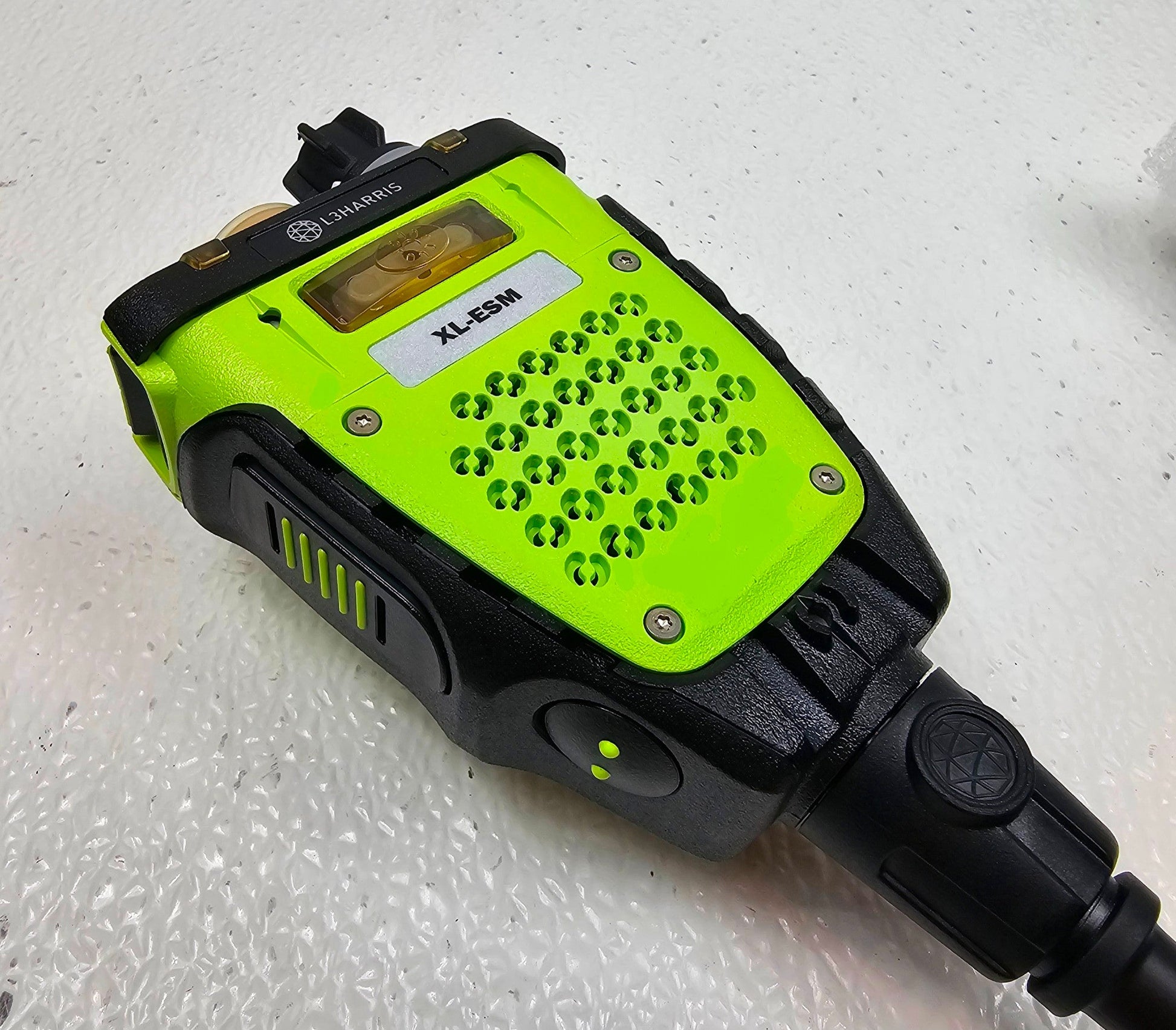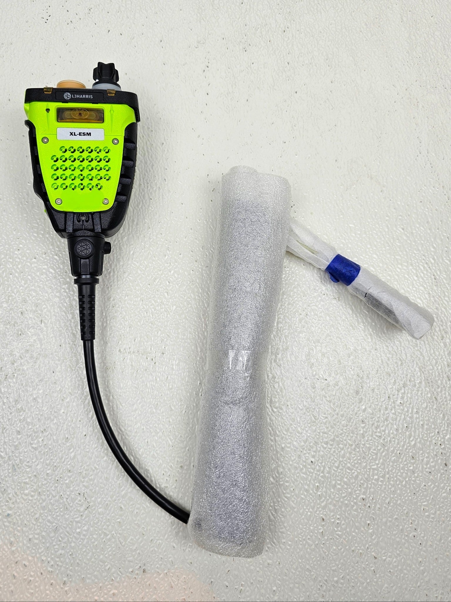 NEW Harris XL-ESM Fire Rated Green Speaker Mic, model number 14100-4700-0. This speaker mic is engineered for extreme conditions, featuring a fire rating up to 500°F, NFPA 1802 immersion rating, and UL rating for C1D2 hazardous locations. It includes an emergency button, channel selector, strobe light, and high visibility green design, ensuring reliable performance and safety in the most demanding environments. If you have any questions, please contact us (M-F: 8am-4pm) Mountain Time.