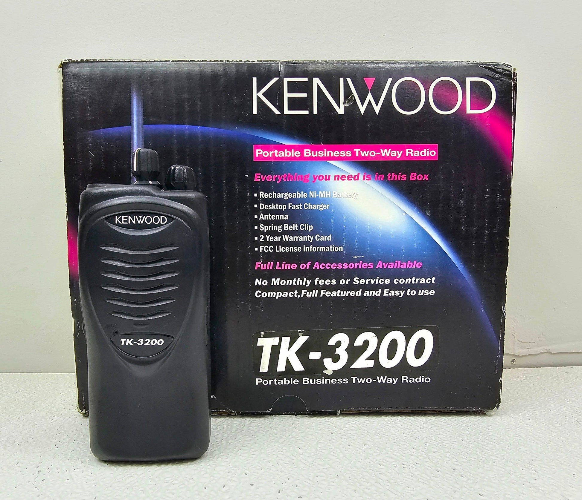 NEW Kenwood TK-3200 UHF Analog portable. This is a 2 watt, 8 Channel radio with a band split of 450-470 MHz. Units are new in box and come complete with antenna, battery, belt clip, and charger. Free programming is available (Up to 16 Channels). If you have any additional questions, please contact us (M-F:8AM-4PM) Mountain Time.