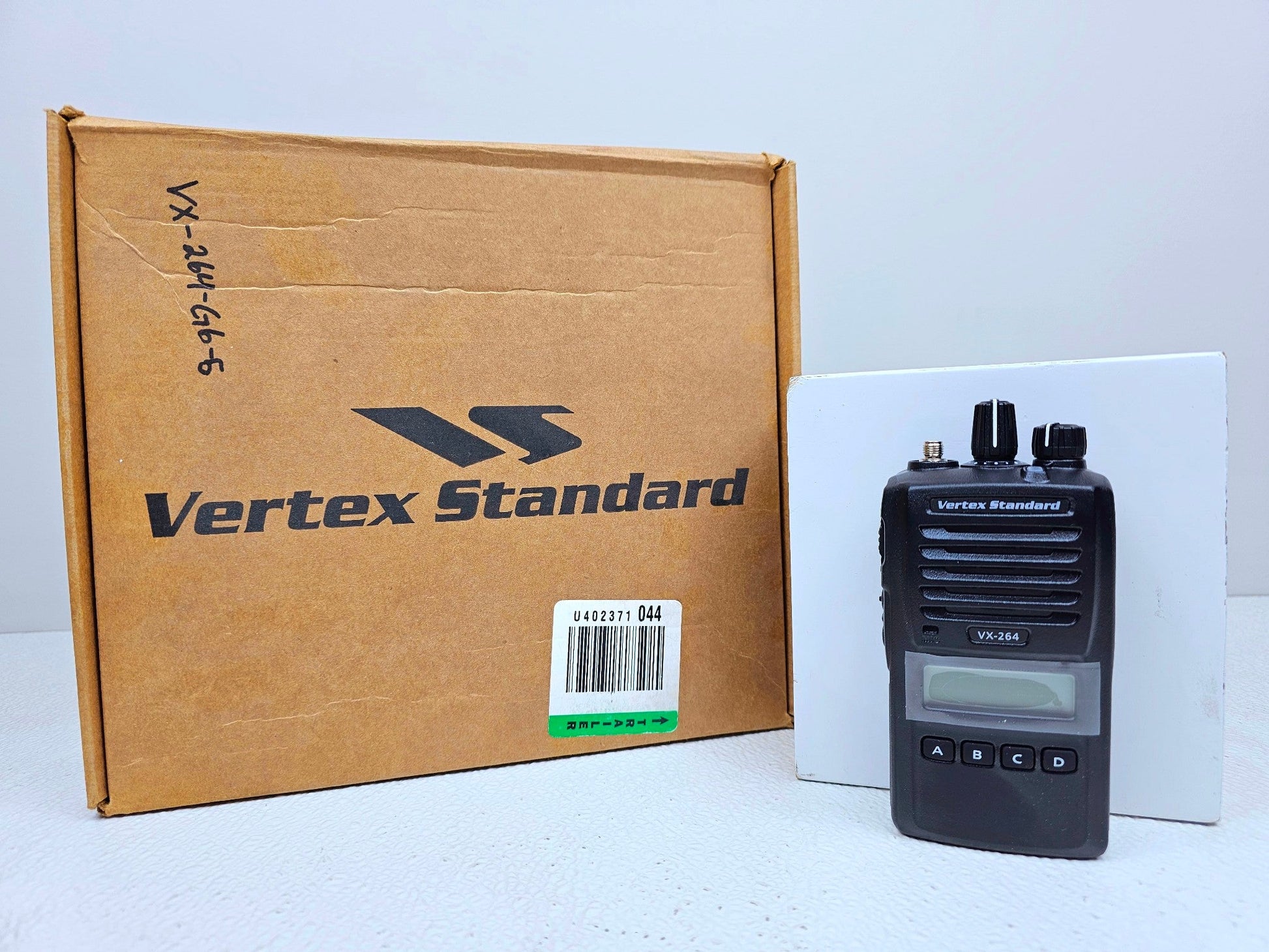 (NEW IN BOX) Vertex UHF radio - model number VX-264-G6-5. This is a 5 watt, 128 channel radio with a band split of 403-470 MHz. Radio is new in box and guaranteed fully operational. Unit comes complete with antenna, battery, belt clip and charger. Free programming is available (Up to 16 Channels). If you have any questions please contact us (Mon-Fri, 8AM-4PM) Mountain Time.