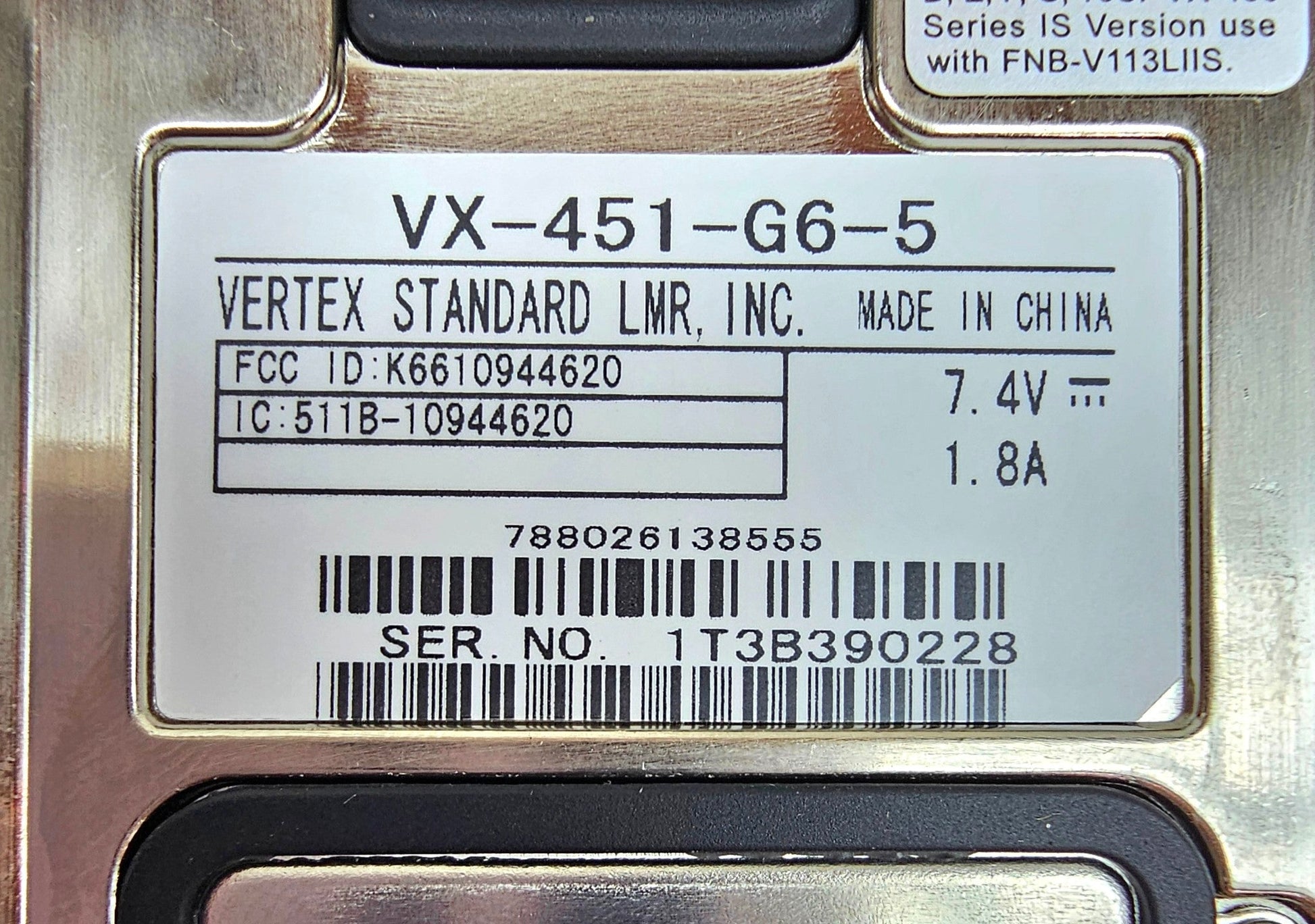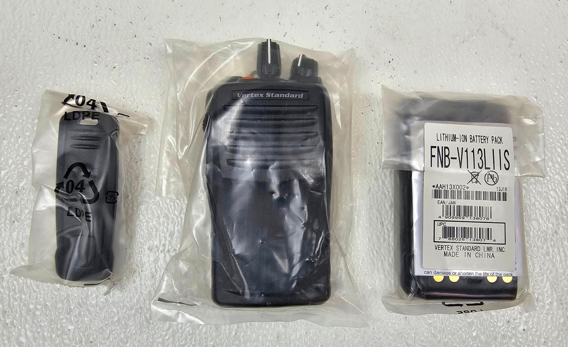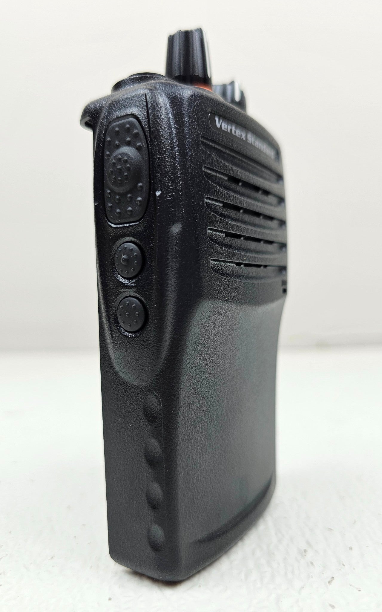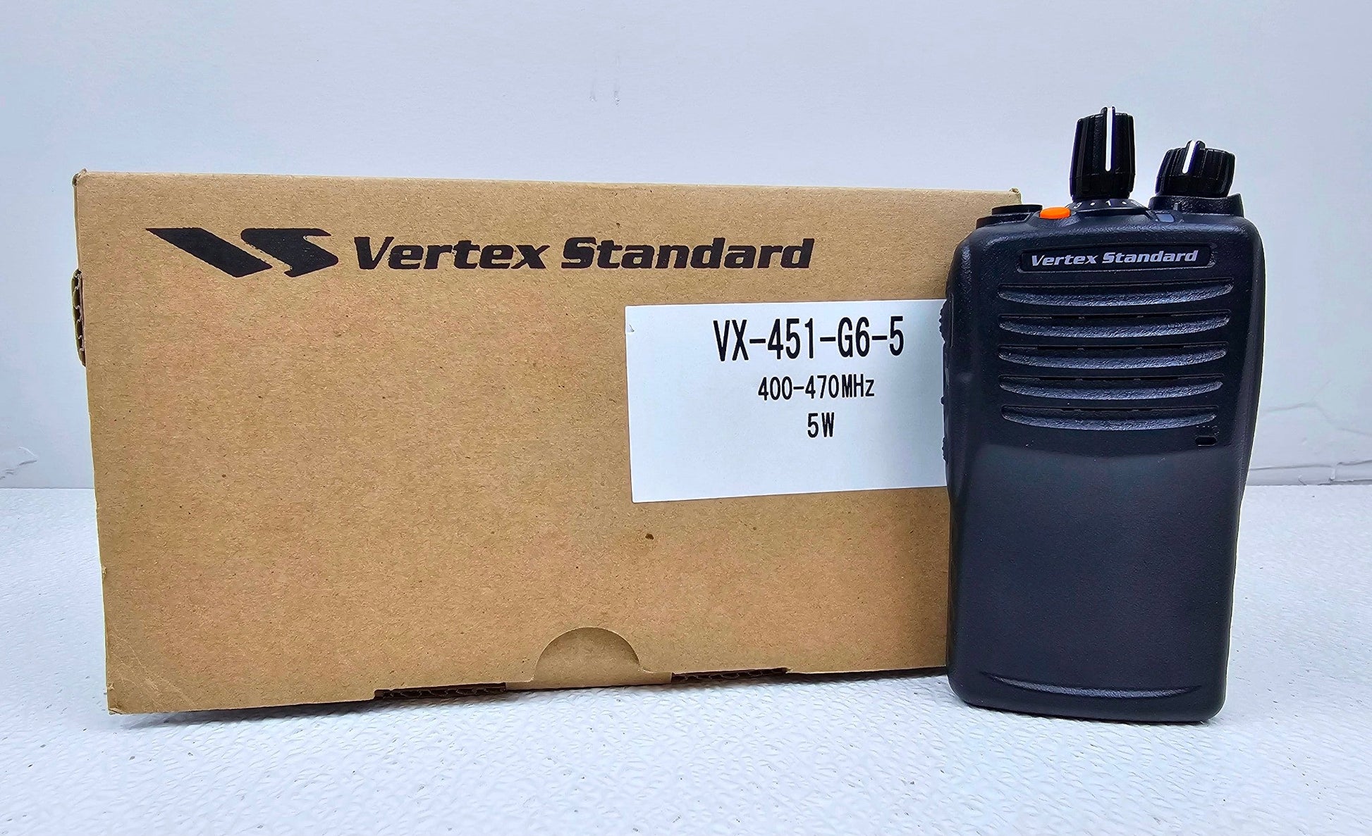 NEW Vertex UHF radio, model number VX-451-G6-5 This is a 5 watt, 32 channel radio with a band split of 403-470 MHz. Radio comes with battery and belt clip. Free programming is available (Up to 16 Channels). If you have any questions please contact us (M-F: 8am-4pm) Mountain Time.