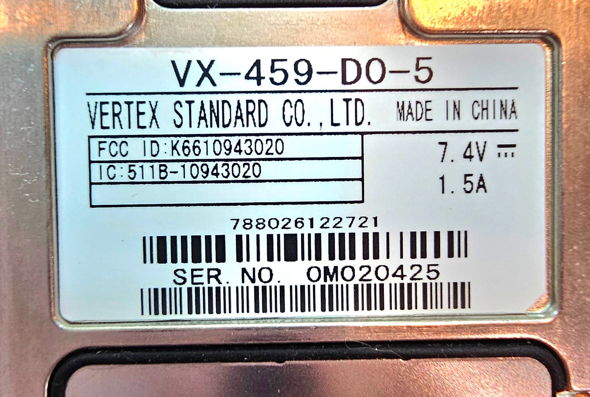 (NEW) Vertex VX-459-D0-5. This is a 5 watt, 512 channel VHF radio with a band split of 134-174 MHz. Radios are in great condition and guaranteed fully operational. Free programming is available (1-16). If you have any questions please contact us. Office Hours M-F (8-4 pm) Mountain Time.