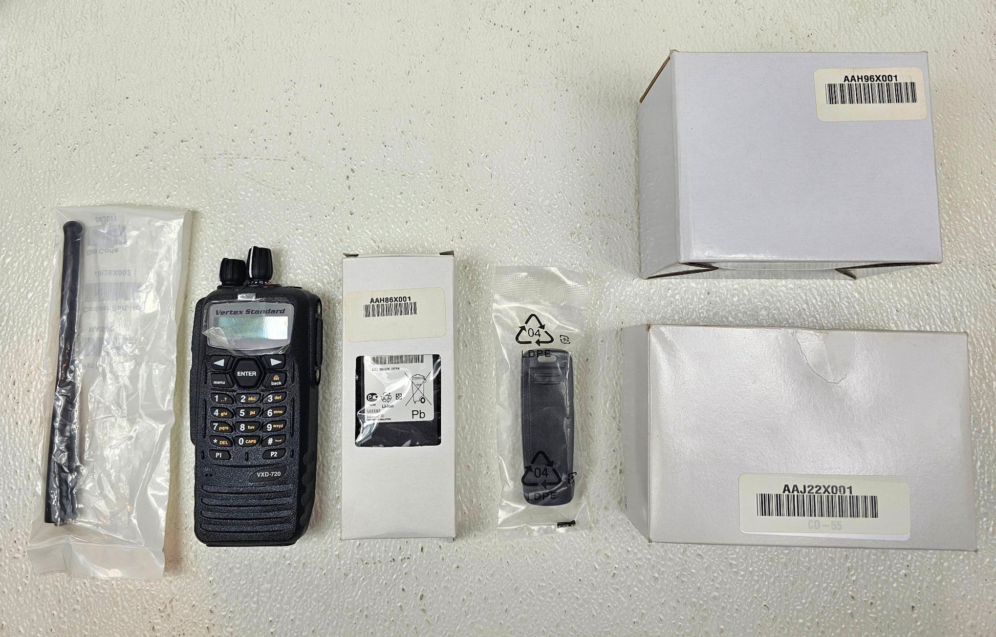 (NEW) Vertex VXD-720-G7B-4, UHF 450-512 MHz, 512 channel 4 Watt digital radio that is IP57 rated submersible up to 3ft. This radio is NEW in box & guaranteed fully operational. Unit includes battery, belt clip, antenna and charger. If you have additional questions please contact us ( M-F, 8am-4pm MT).