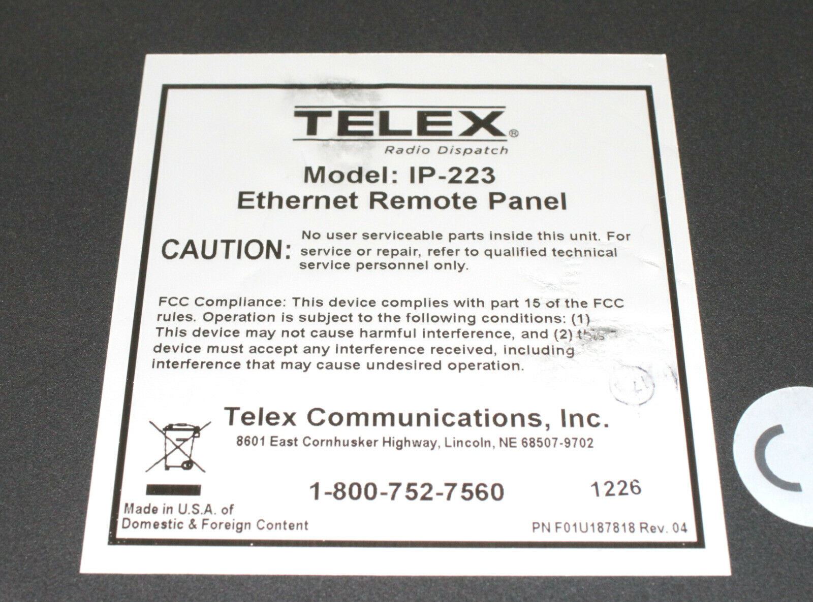 Telex Model IP-223 Ethernet Remote Panel. Please contact us with any further questions.