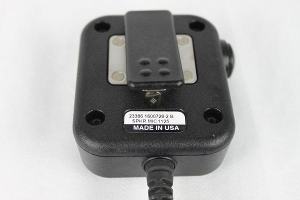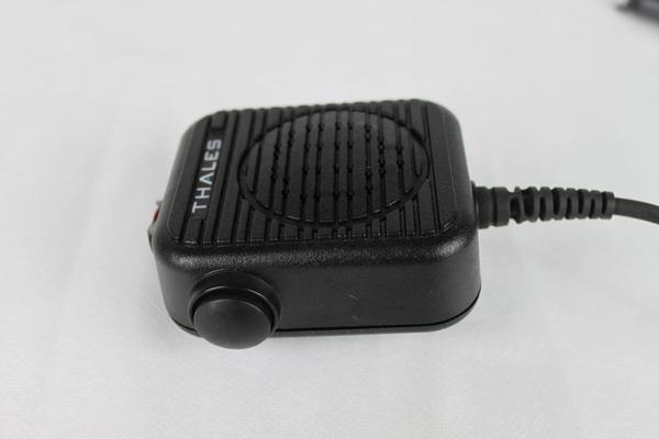 THALES Liberty 23386 Palm Speaker/Microphone. Like NEW, but do not have original box. Features a large push-to-talk (PTT) switch, a strong, 360° rotating clip, an earphone jack, and a resilient, coiled cord. The Speaker/Mic has a HI/LO audio switch to conveniently select loud audio for high noise environments or lower audio for office environments. The Speaker/Mic provides clear audio and distortion free transmission and is built for use in rugged and hostile environments. High temperature speaker, balanced audio, Push-To-Talk (PTT) switch, emergency button, 36” coiled cable. Intrinsic Safe Ruggedized Speaker Microphone.