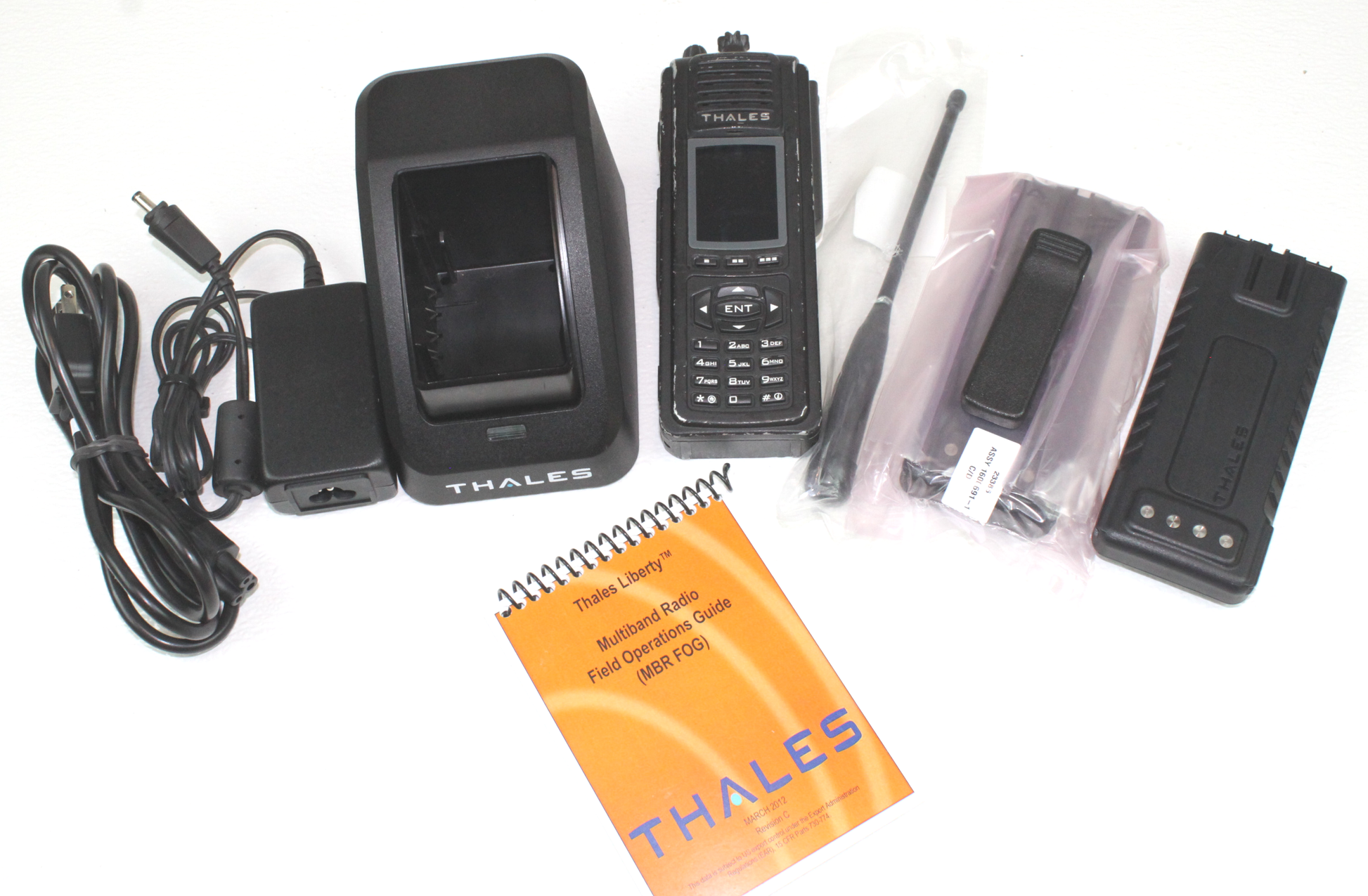 THALES PRC-7332 Liberty Multiband (VHF, UHF, 700 & 800Mhz) PHASE 1 P25 field programmable radio. Each radio includes an individual charger, full spectrum antenna, NEW lithium battery w/ belt clip, one spare USED battery and field operations guide. All radios are in good condition and guaranteed fully operational. The cosmetic condition of the radio is Good to Fair as seen in the pictures. Features included are field programmable, P25 Trunking, AES & DES Encryption, OTAR, MDC1200 and wideband. We also have programming cables for these radios for an extra $95.00 if interested. Please inquire if you are interested in higher quantities of radios as we can do discounted pricing and include Six-Bank Multi-chargers. Sorry, but we are unable to program trunking systems for you. If you have any questions please contact us at info@used-radios.com, or by calling 720-459-7557.