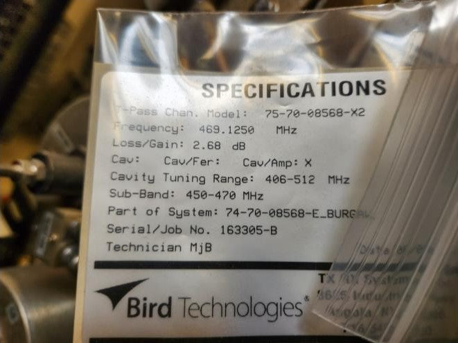 This TxRx / Bird 75-70-08568 is a high-performance UHF T-Pass transmitter and receiver combiner engineered for trunked or conventional radio systems operating in the 450–470 MHz UHF band.