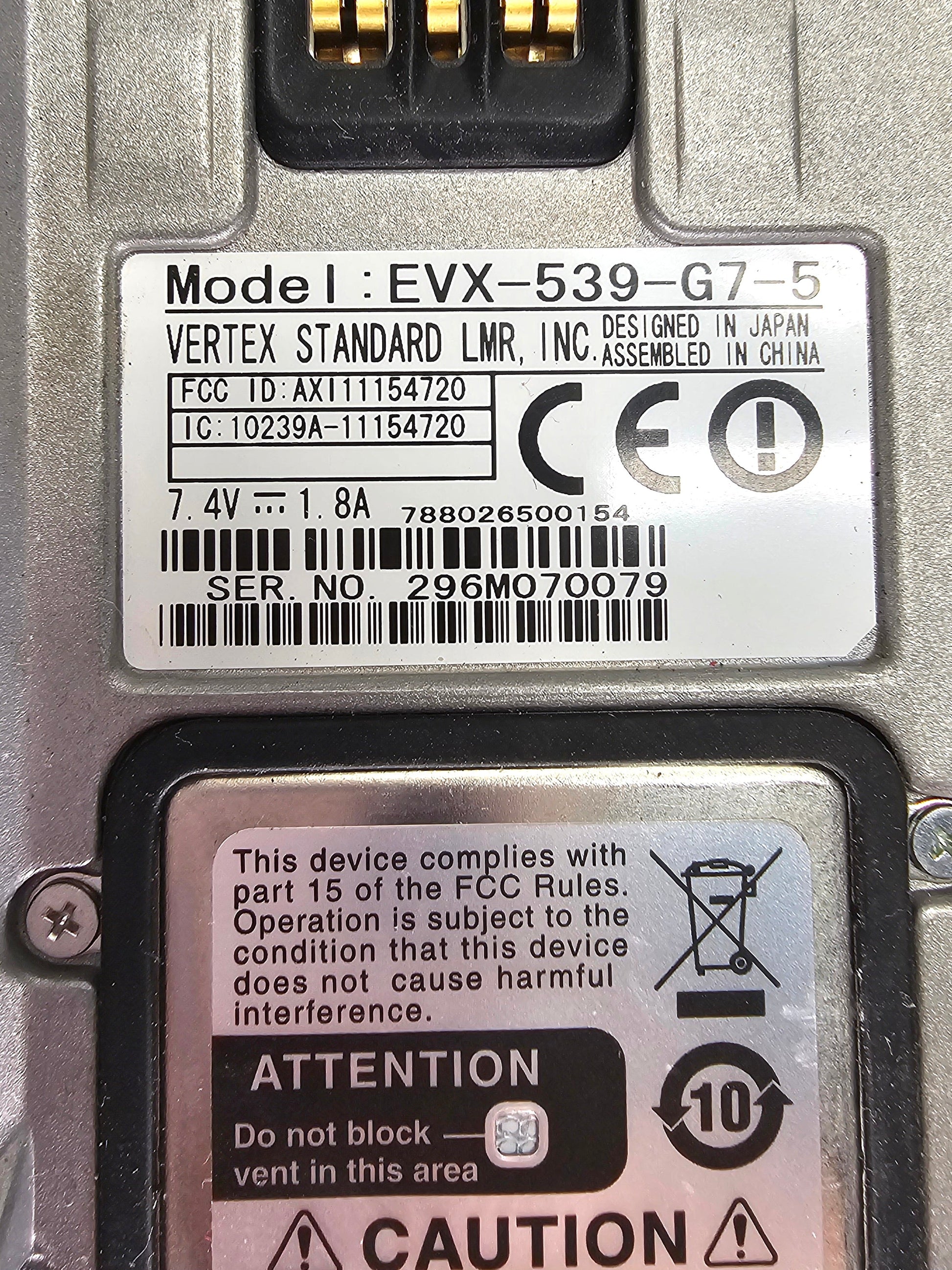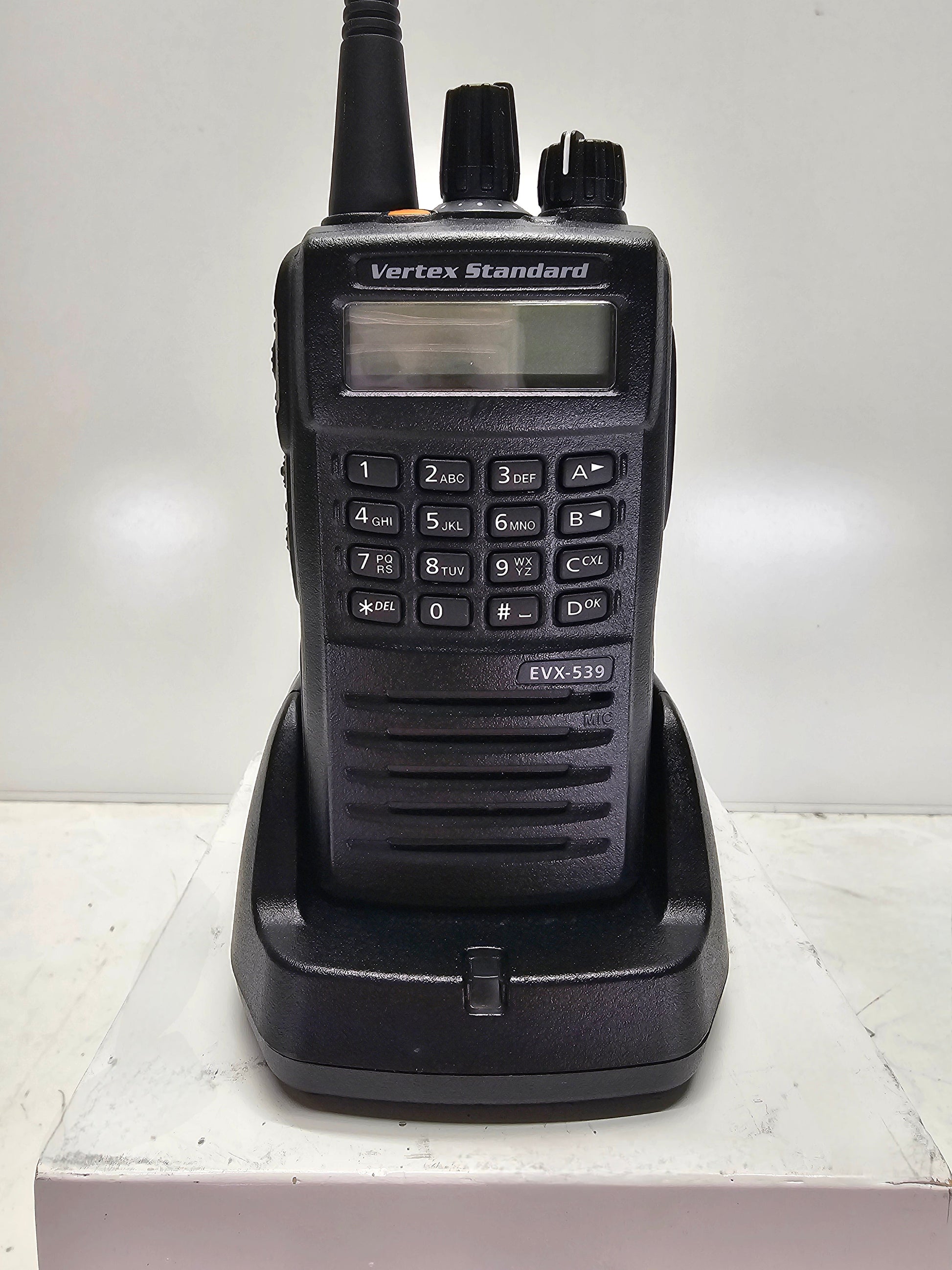 Vertex EVX-539-G7-5, UHF 450-512 Digital radio. This unit is a 512 Channel 5W digital full keypad radio that is IP57 rated submersible up to 3ft. Radio comes with the battery, belt clip, antenna and charger. We will program up to 16ch for free. If you have additional questions please contact ( M-F, 8am-4pm MT).