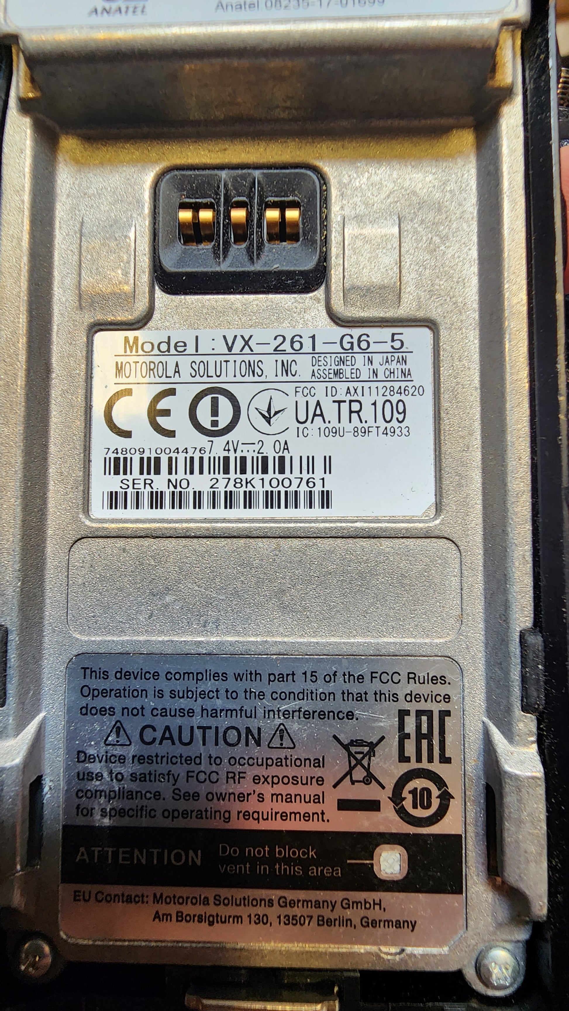 Vertex VX-261 G6-5 UHF 403-470 16ch 5W
