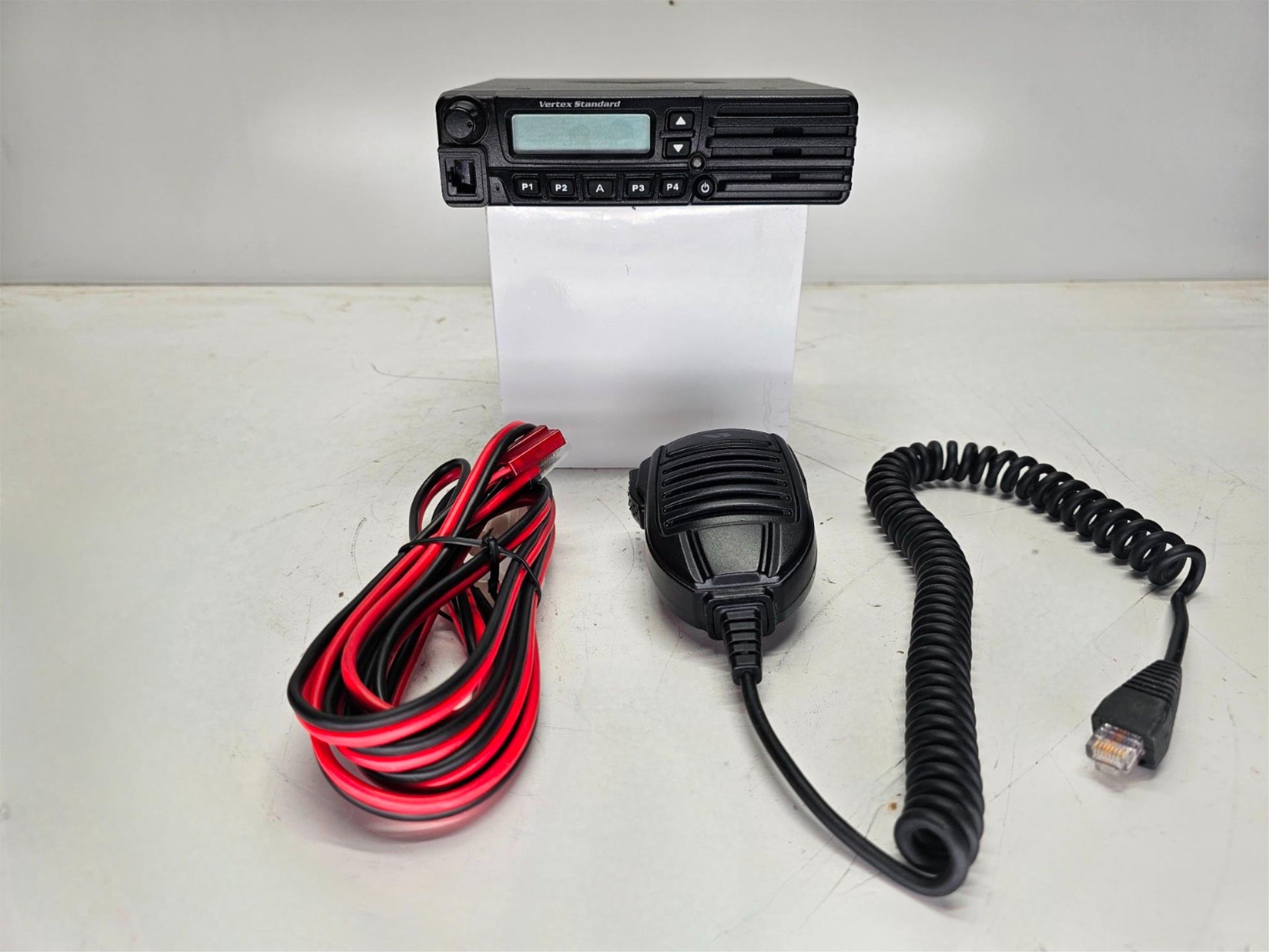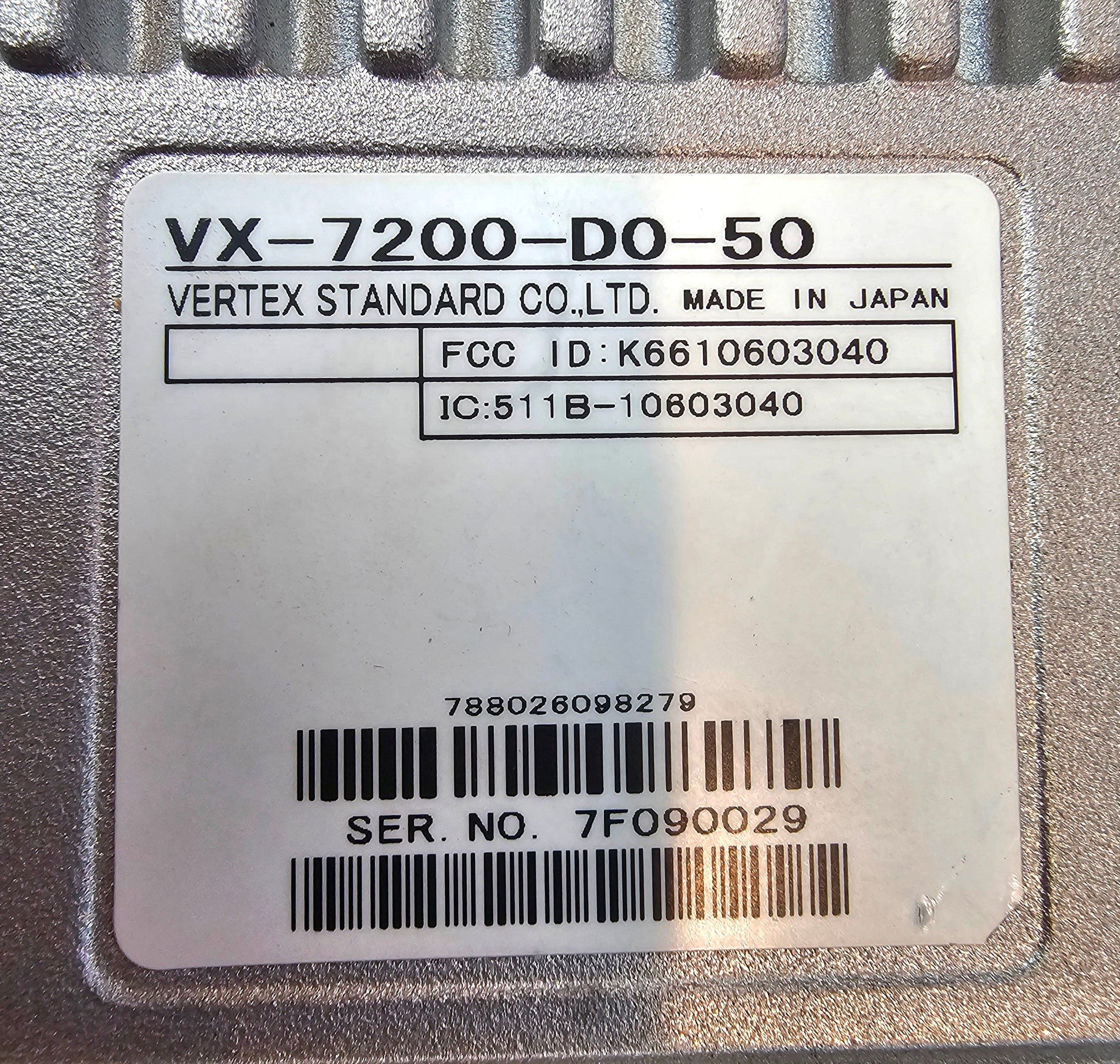 Vertex VX-7200-D0-50. This is a 50 watt, 501 channel radio with a band split of 134-174 MHz. Units are in great condition and are guaranteed fully operational. Radio comes complete with palm mic, mounting bracket, and power cable. Free programming is available (Up to 16 Channels). If you have any questions, please contact us (M-F: 8am-4pm) Mountain Time.