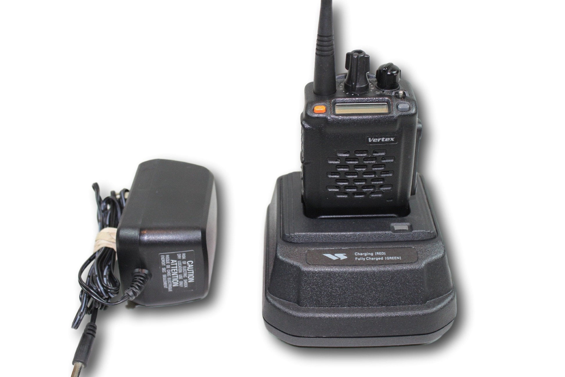The Vertex VX-800 is a 5 watt, 200 channel UHF radio with a band split of 450-490.  Radio is in great  condition and guaranteed fully operational. Unit comes with antenna, battery, belt clip, and charger.   Free programming is available (1-16).