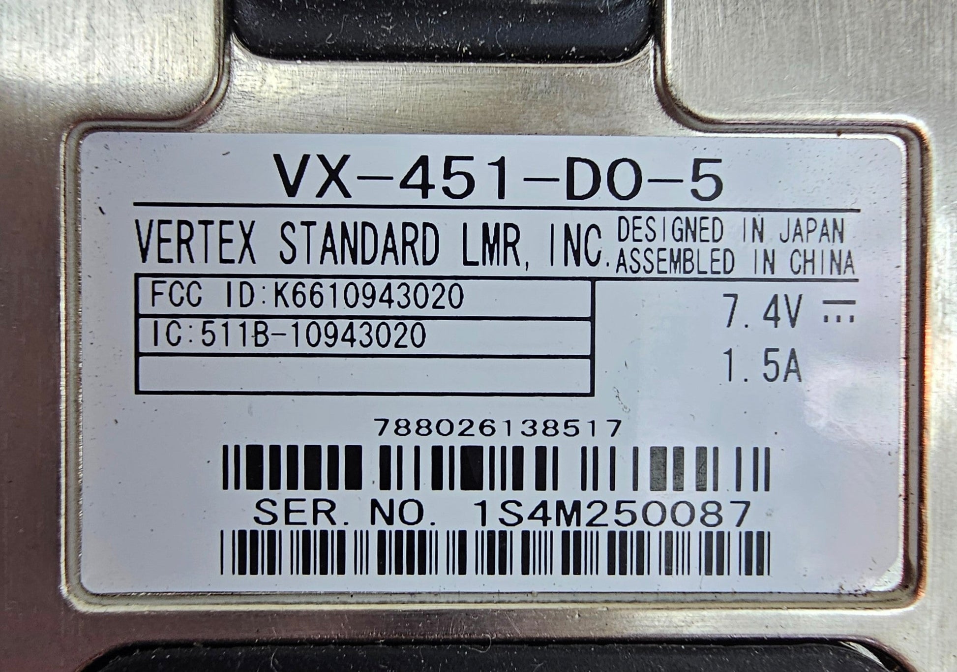 Vertex VHF radio, model number VX-451-D0-5 This is a 5 watt, 32 channel radio with a band split of 134-174 MHz. Radios are in excellent condition and guaranteed fully operational. Unit comes complete with antenna, battery, belt clip and charger. Free programming is available (Up to 16 Channels). If you have any questions please contact us (M-F: 8am-4pm) Mountain Time.